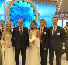 По традиции, его открыла торжественная часть. Награды из рук ректора Сергея Анатольевича Хахомова получили преподаватели и сотрудники вуза, достигшие высоких показателей в работе. За многолетний плодотворный труд и в связи с юбилеем Почетной грамоты университета была удостоена экономист 1 категории планово-экономического отдела Жанна Владимировна Новикова.