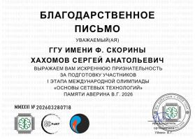 Благодарственное письмо за подготовку участников международной олимпиады