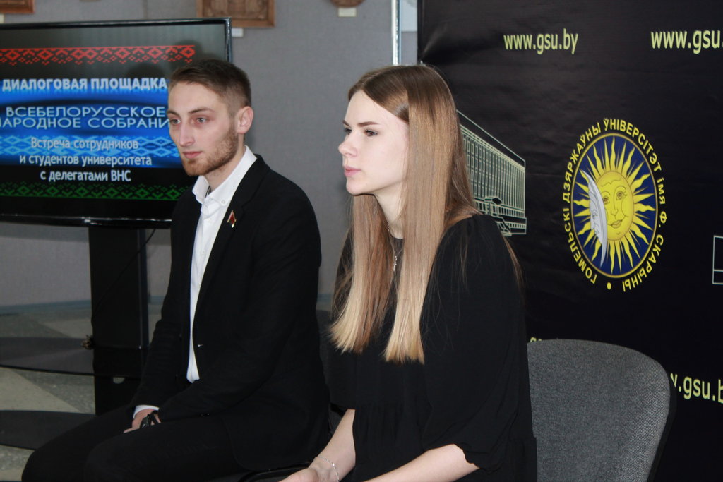 У ліку дэлегатаў ад універсітэта на ўсенародным форуме была і трэцякурсніца эканамічнага факультэта Дар’я Казлова. На сённяшняй сустрэчы са студэнтамі і выкладчыкамі яна звярнула ўвагу: на сходзе абмяркоўвалі шырокі спектр тэм, якія тычацца маладзёжнай палітыкі. “Мяне вельмі цікавіла пытанне прадастаўлення першага рабочага месца маладым спецыялістам. Як было адзначана, сістэма размеркавання, якая існуе ў Беларусі, будзе захаваная. Гэта вельмі важна”, – лічыць студэнтка.