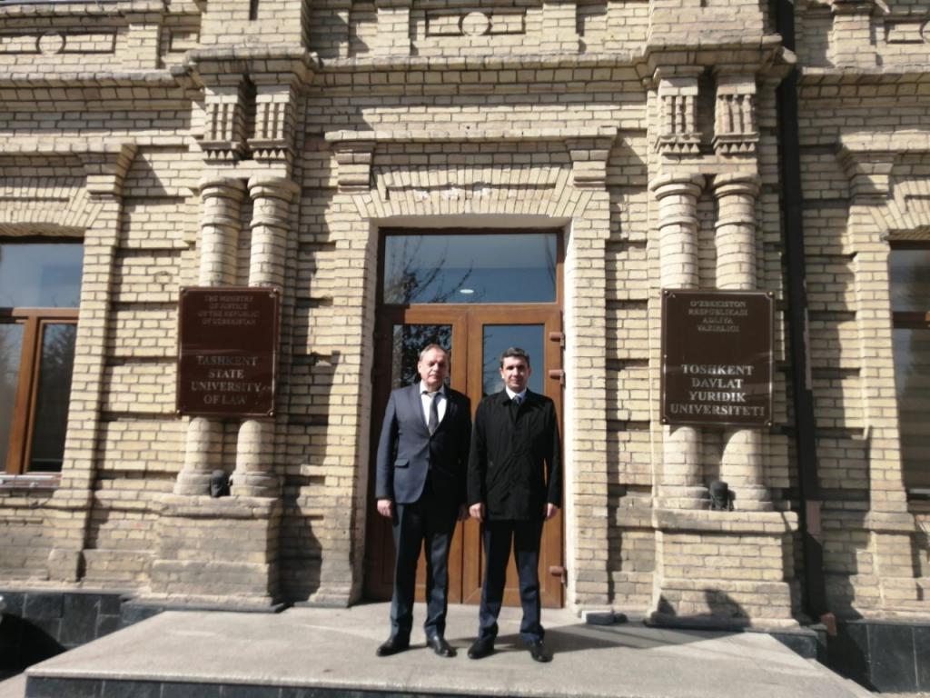 На сустрэчы з кіраўніцтвам Ташкенцкага дзяржаўнага юрыдычнага ўніверсітэта Ігар Семчанка ўзгадніў умовы рэалізацыі праграмы сумеснай падрыхтоўкі спецыялістаў па спецыяльнасці “Юрыспрудэнцыя”, а таксама падпісаў Пагадненне аб акадэмічным абмене студэнтамі паміж ГДУ і ТДЮУ.