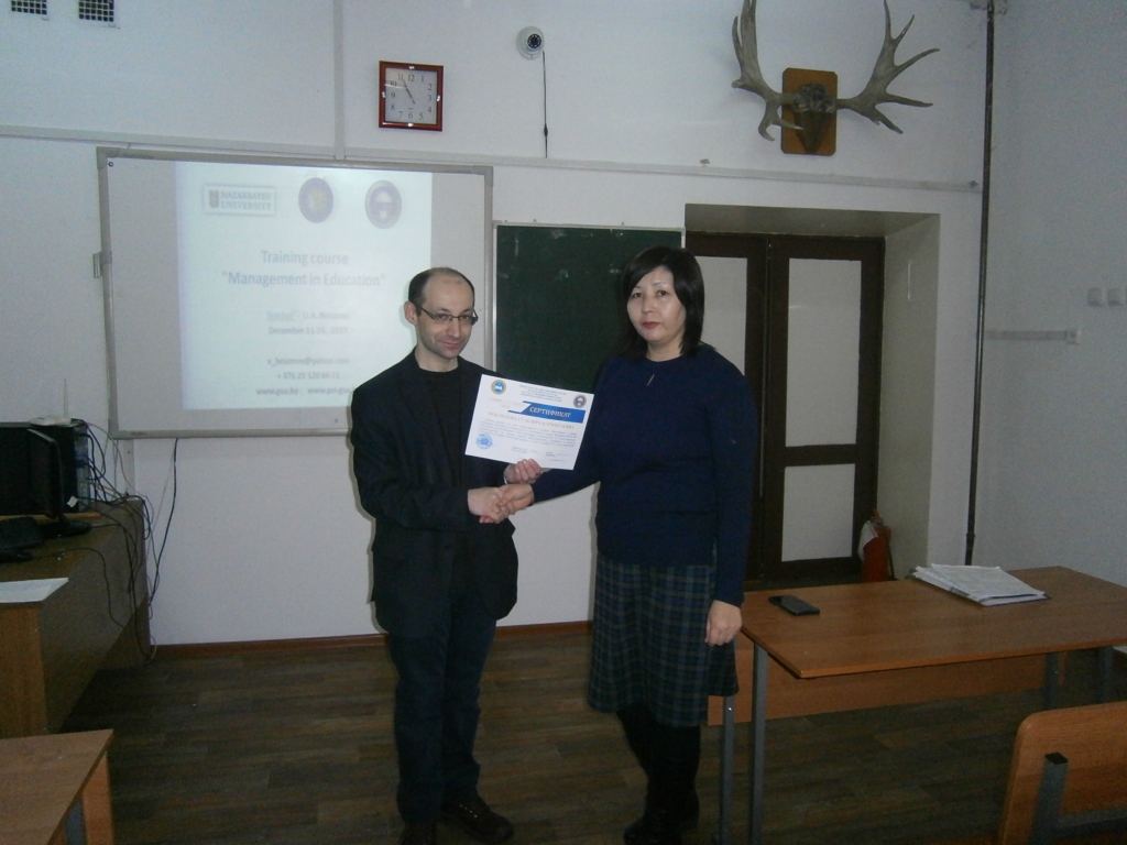 С 11 по 16 декабря 2017 года представители Гомельского государственного университета имени Ф. Скорины – декан факультета психологии и педагогики Владислав Бейзеров и заместитель декана факультета по научной работе Виталий Дворак находились с рабочим визитом в Республике Казахстан по приглашению Высшей школы образования «Назарбаев Университет» в рамках программы «Обучение отечественными и иностранными специалистами по педагогическим специальностям на основе лучших международных стандартов в области менеджмента и сфере подготовки кадров».