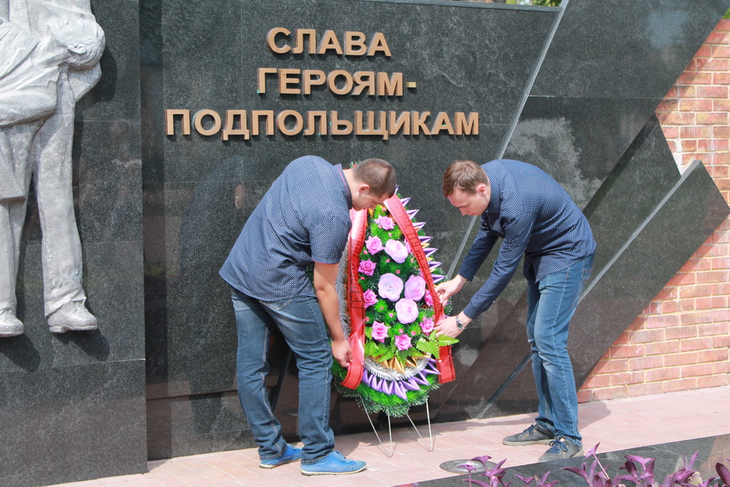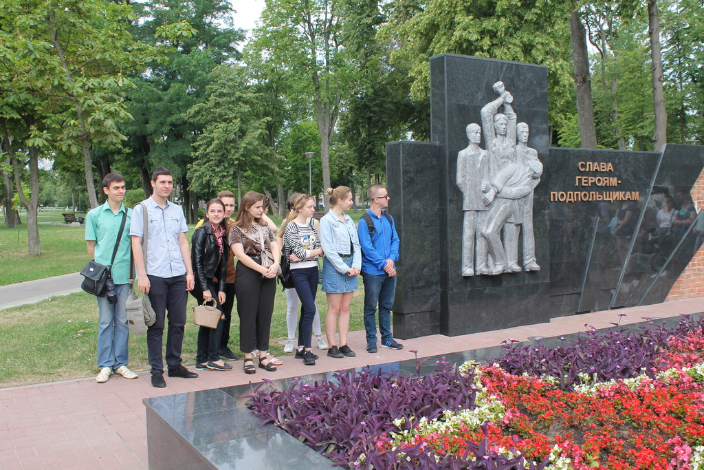 В этот же день у памятника гомельским подпольщикам, расстрелянным в период гитлеровской оккупации Гомеля, отдать дань уважения и памяти собрались представители ректората, преподаватели и студенты исторического факультета, сотрудники  университета и жители города. Среди присутствующих были дочери погибших героев-подпольщиков Ира Дмитриевна Басакова, Елена Евгеньевна Хомич и Евгения Фёдоровна Приходько, которые поделились воспоминаниями о своем военном детстве и напомнили всем присутствующим, как важно сохранить мир.