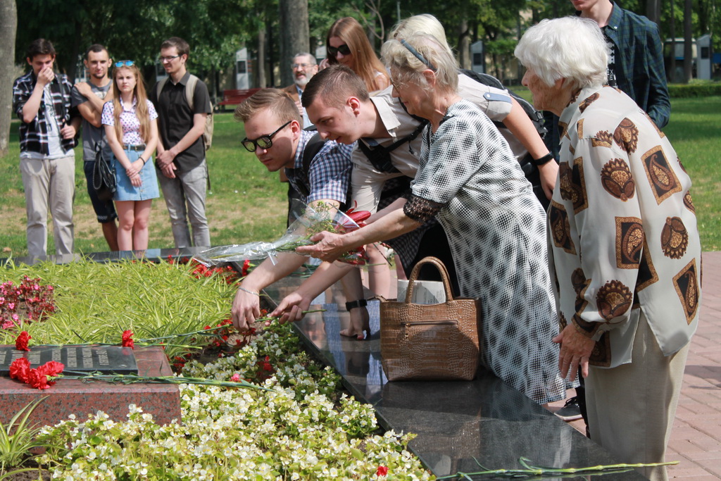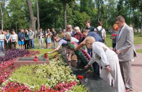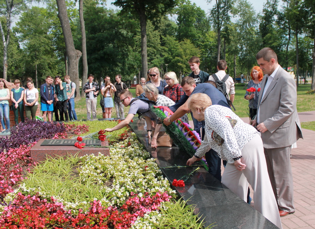 29 июня студенты факультета иностранных языков во главе с преподавателем кафедры теории и практики английского языка Попковой Екатериной Ивановной стали участниками районного торжественного митинга у памятника Народным ополченцам, где почтили память павших в боях за независимость минутой молчания и возложили цветы и венки.