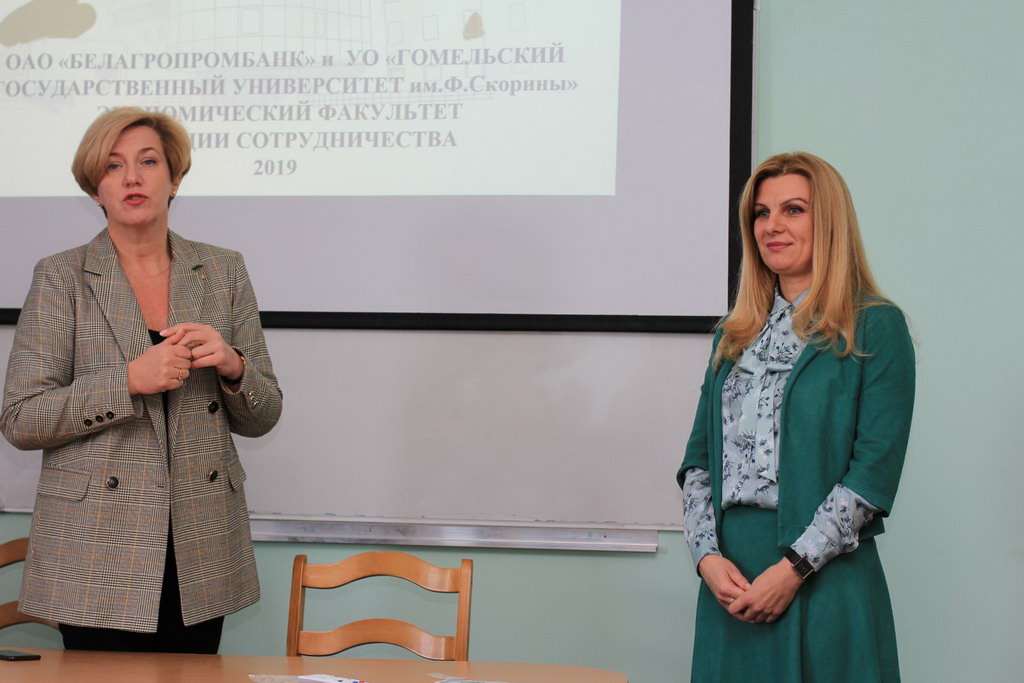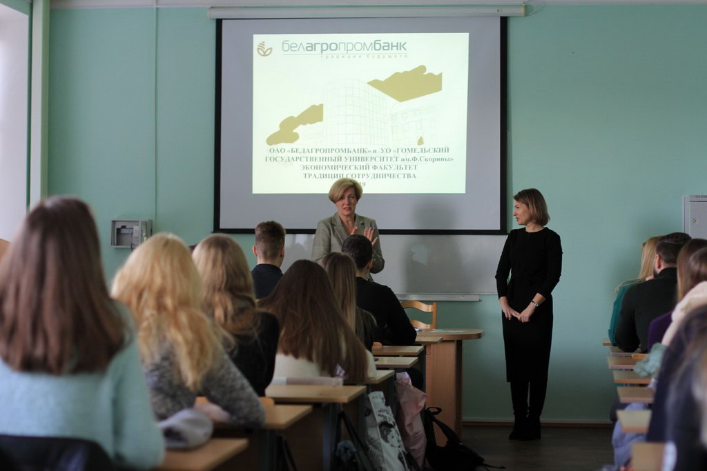 Студенты специальности «Финансы и кредит» с гордостью узнали о том, что среди выпускников ВУЗов города Гомеля, получивших свое первое рабочее место в подразделениях региональной дирекции ОАО «Белагропромбанк», лидирующие позиции с большим отрывом занимают выпускники УО «ГГУ им. Ф. Скорины». В настоящий момент около 150 выпускников экономического факультета построили успешную карьеру и занимают руководящие должности в ОАО «Белагропромбанк».