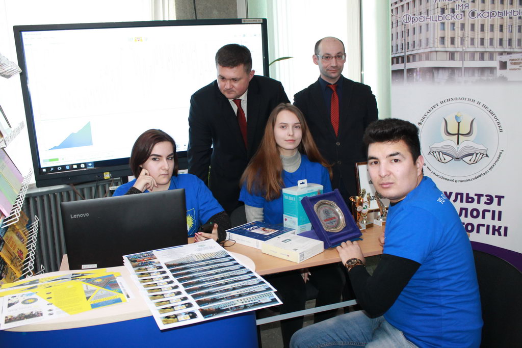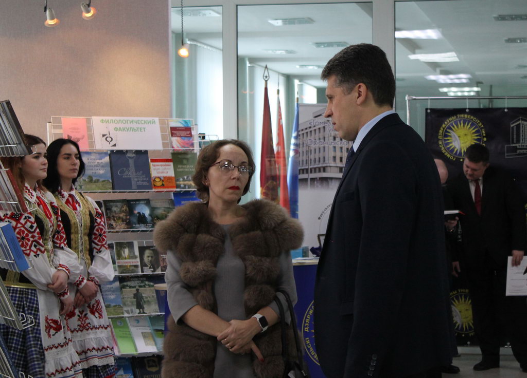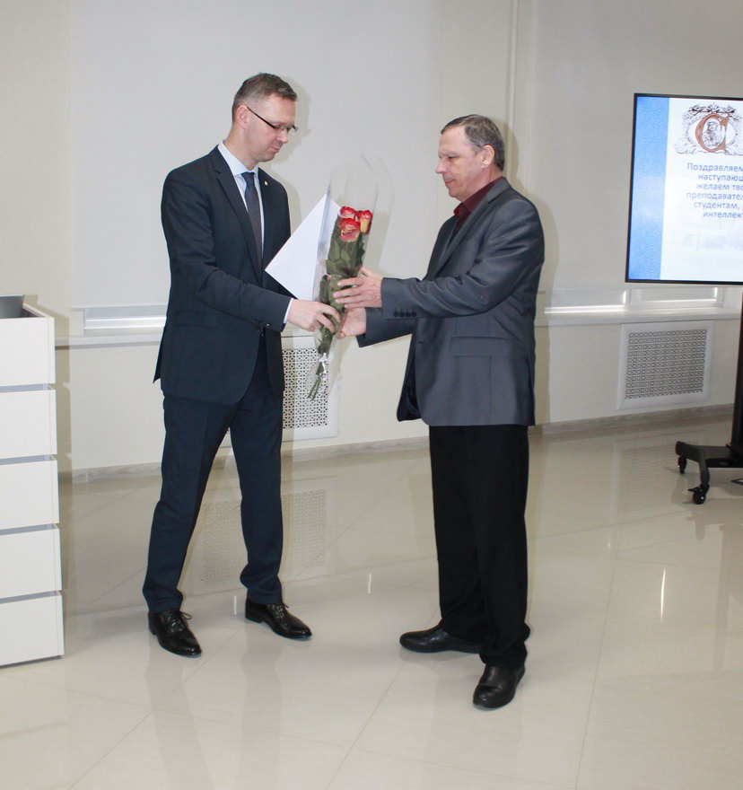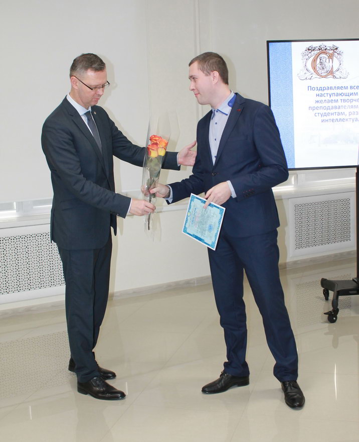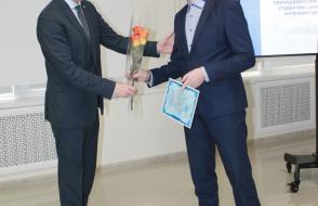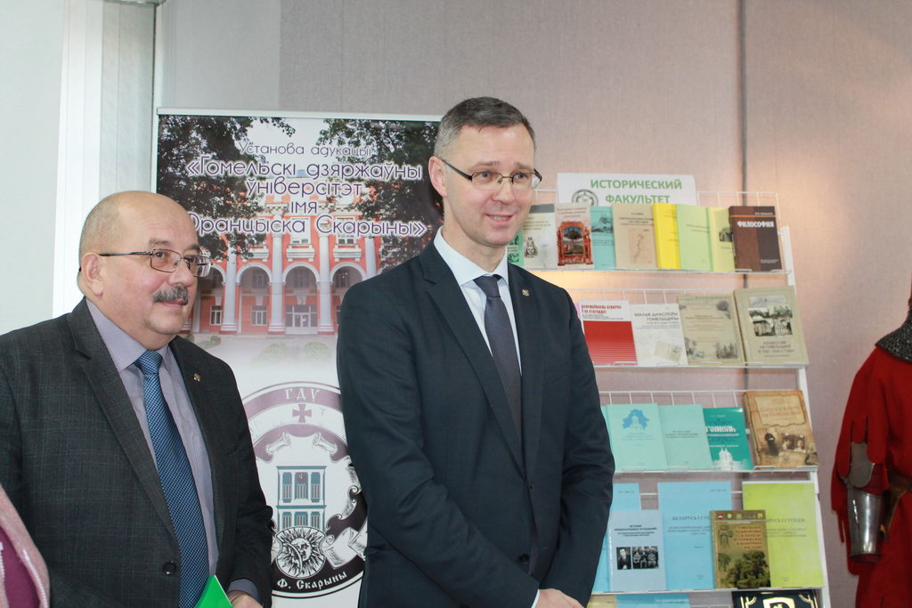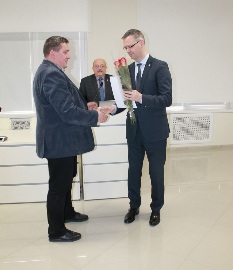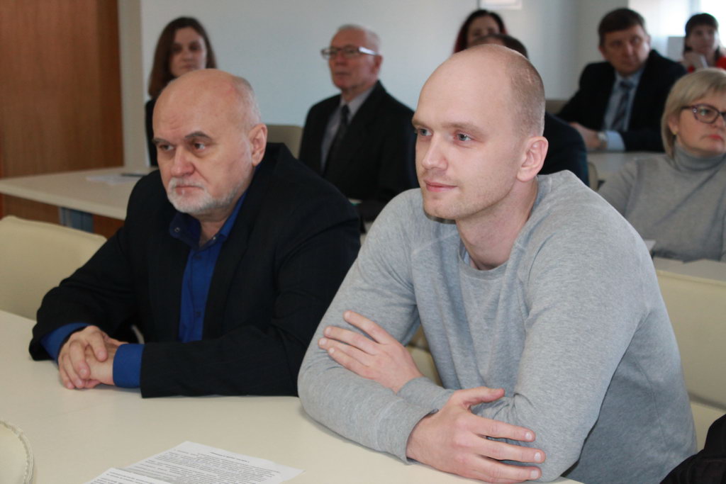 Члены Совета университета поздравили лауреатов конкурса научных работ «Скорининские научные чтения – 2019». Ими стали доцент кафедры теории и методики физической культуры Владимир Старченко и преподаватель кафедры спортивных дисциплин Александр Метелица, ассистент кафедры вычислительной математики и программирования Елена Кечко, доцент кафедры белорусской литературы Ирина Божок.