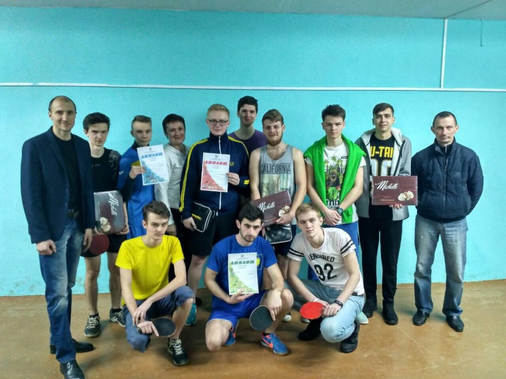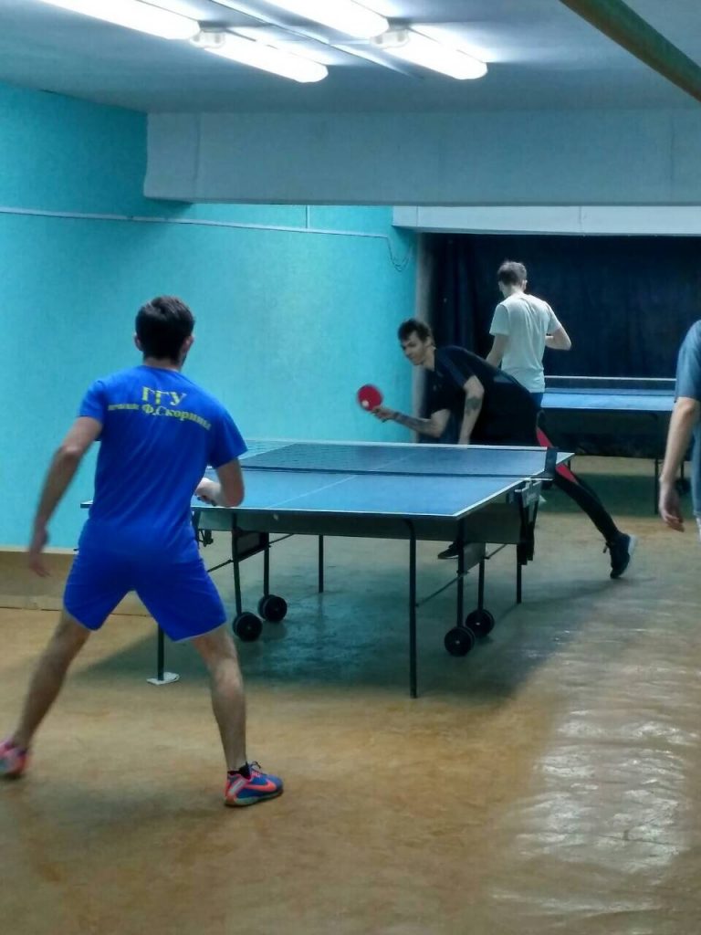 В последние дни марта на базе спортивного комплекса № 1 «ГГУ имени Ф.Скорины» прошло первенство университета по настольному теннису среди факультетов. В результате упорной борьбы места распределились следующим образом. Среди мужских команд на высшую ступень пьедестала почета поднялись спортсмены факультета физики и информационных технологий, вторыми стали студенты факультета математики и технологий программирования, замкнул тройку призеров геолого-географический факультет. У прекрасной половины человечества победителями стали будущие психологи, на втором месте будущие юристы, замкнули тройку призеров спортсменки факультета физики и информационных технологий.