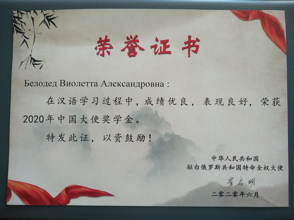 10 июля в Посольстве Китайской Народной Республики в Беларуси состоялась церемония вручения премии Чрезвычайного и Полномочного Посла КНР. Ее лауреатами стали студенты и школьники, изучающие китайский язык.