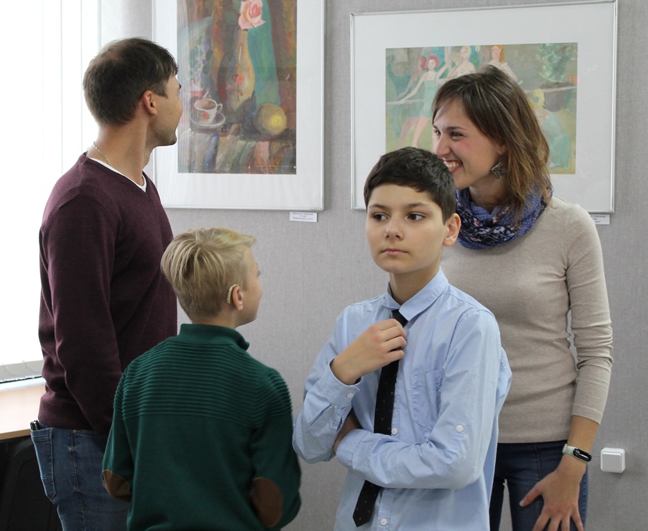 В выставочном зале ГГУ имени Ф. Скорины в торжественной обстановке состоялось открытие юбилейной выставки «Я в красках слышу мир», посвященной 20-летию класса учащихся с ограниченными возможностями. С приветственным словом к гостям обратились проректор по воспитательной работе Юрий Никитюк, директор Гомельского государственного художественного колледжа Елена Зейбек и директор УО «Детская художественная школа искусств г. Гомеля» Владимир Осипов. Именно на базе этой школы в 2000 году по решению Гомельского горисполкома была открыта экспериментальная группа для детей с нарушением слуха.