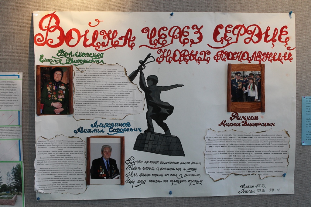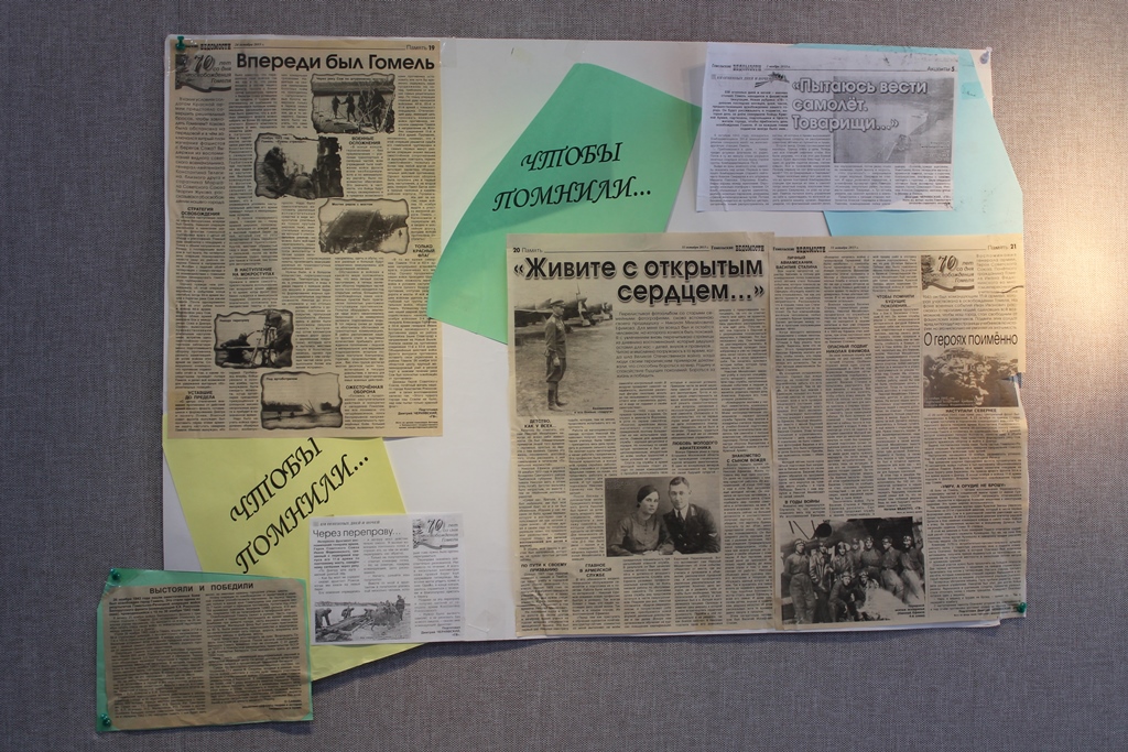 В Гомельском госуниверситете открылась ежегодная экспозиция творческих работ «Память народа – в надежных руках молодых», посвященная 77-летию освобождения Гомеля от немецко-фашистских захватчиков. Выставка, организаторами которой являются отдел молодежных инициатив и студенческого самоуправления, профсоюзный комитет сотрудников, Совет женщин ГГУ, несет в себе цель сохранить память о Великой Отечественной войне и воспитать патриотизм у молодежи.