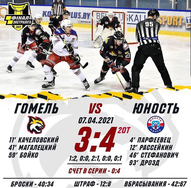 7 апреля хоккейный клуб «Гомель» в четвертом матче финальной серии Кубка Президента уступил столичной «Юности» во втором овертайме со счетом 4:3 2ОТ, счет в серии стал 4:0 и минский клуб в десятый раз стал чемпионом.