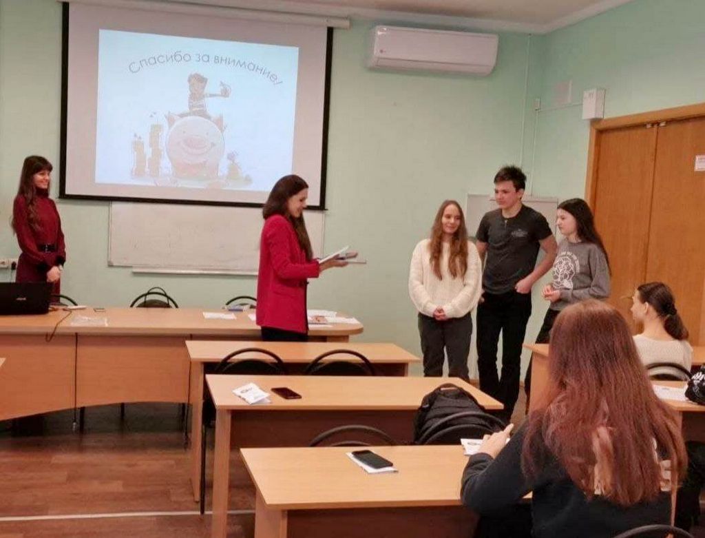 Насыщенную программу зимней школы абитуриента продолжил увлекательный блицтурнир «Где финансовая логика?», который провела для школьников доцент кафедры финансов и кредита Елена Александровна Кадовба. Ребята с большим задором и энтузиазмом отвечали на вопросы викторины, продемонстрировали глубокие знания, незаурядную эрудицию и смекалку. Можно с уверенностью сказать, что во время проведения блицтурнира царила дружеская и добрая атмосфера, а чувство азарта появилось и у ребят, и у преподавателей!