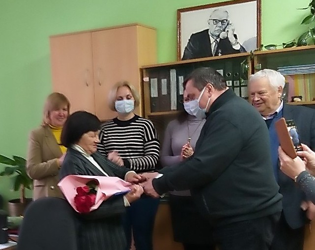 В прошедшую пятницу в теплой и дружественной обстановке, но с грустью от предстоящего расставания, на кафедре оптики проводили на заслуженный отдых кандидата физико-математических наук доцента Валентину Григорьевну Шолох. Поблагодарить ветерана педагогического труда за плодотворное сотрудничество и личное общение, за вклад в успехи коллектива кафедры, факультета и всего университета пришли не только сотрудники кафедры и руководители факультета, но и бывшие студенты В.Г. Шолох, работающие в других подразделениях факультета и вуза. Почетную грамоту университета Валентине Григорьевне вручил один из них – ректор ГГУ имени Ф. Скорины С.А. Хахомов. Учился у Валентины Григорьевны и заведующий кафедрой оптики В.Е. Гайшун, в поэтических строках выразивший свои пожелания Валентине Григорьевне, а также вручивший приветственный адрес и подарок, подготовленные сотрудниками кафедры. В полном составе приветствовали Валентину Григорьевну сотрудники бюро по метрологии, стандартизации и сертификации, а памятный подарок вручил его руководитель Н.А. Алешкевич. От имени профсоюзной организации университета с добрыми словами обратился к Валентине Григорьевне председатель профкома работников Н.Г. Галиновский. Каждый из посетивших в этот день Валентину Григорьевну на кафедре или в лаборатории атомной физики вспомнил о памятных событиях, высказал в ее адрес добрые пожелания, одарил цветами и/или памятными подарками.