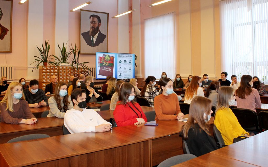 На юридическом факультете Гомельского государственного университета имени Франциска Скорины состоялась диалоговая площадка по обсуждению предлагаемых изменений и дополнений в Конституцию и предстоящему республиканскому референдуму.