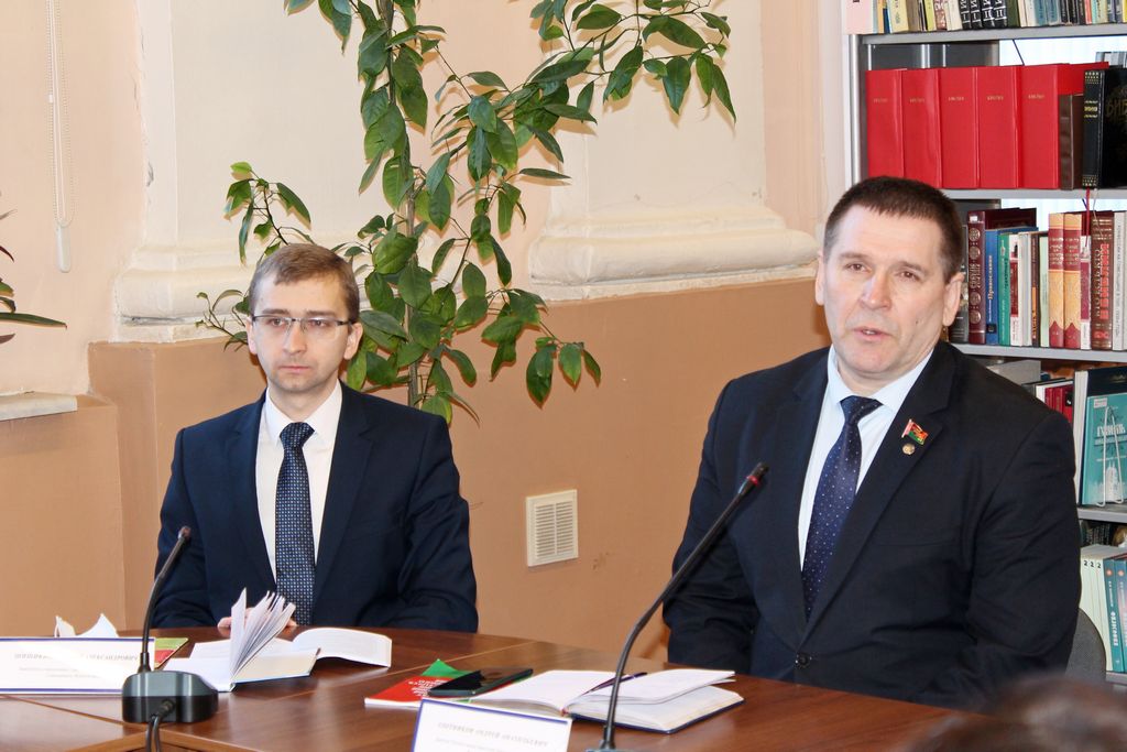 Спикерами на встрече выступили депутат Палаты представителей Национального собрания Беларуси Андрей Злотников и заместитель начальника главного управления юстиции Гомельского облисполкома Алексей Шишикин. В роли модератора выступила декан юридического факультета Ирина Эсмантович.
