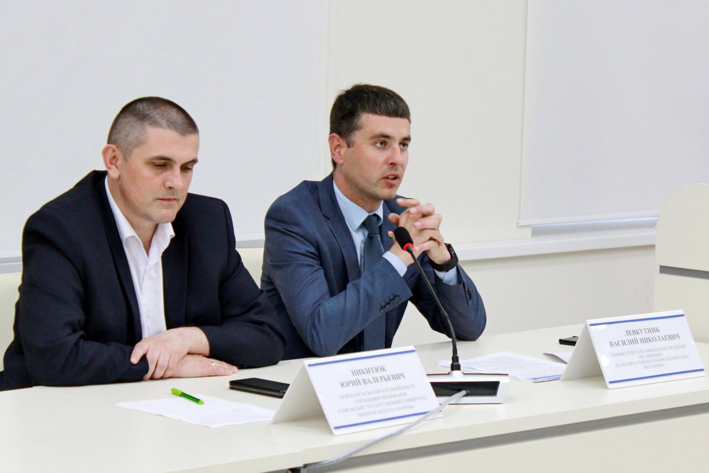 Проректор по воспитательной работе Юрий Никитюк акцентировал внимание на противозаконных действиях молодежи и привел несколько негативных примеров. Юрий Валерьевич призвал всех участников никогда не поддаваться провокациям.