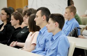 Василий Николаевич рассказал ребятам о том, какие мероприятия запланированы в рамках недели молодежи, а также о совместных проектах ГГУ И БРСМ, таких как «Азбука гражданина», квесты по мемориалам Гомеля и др.