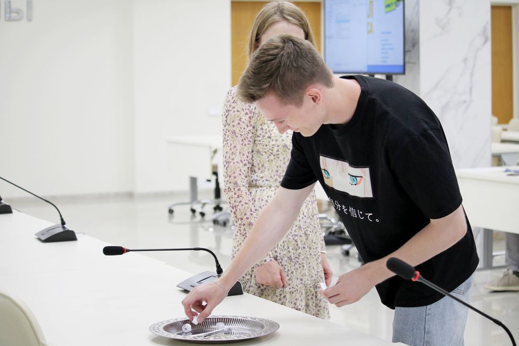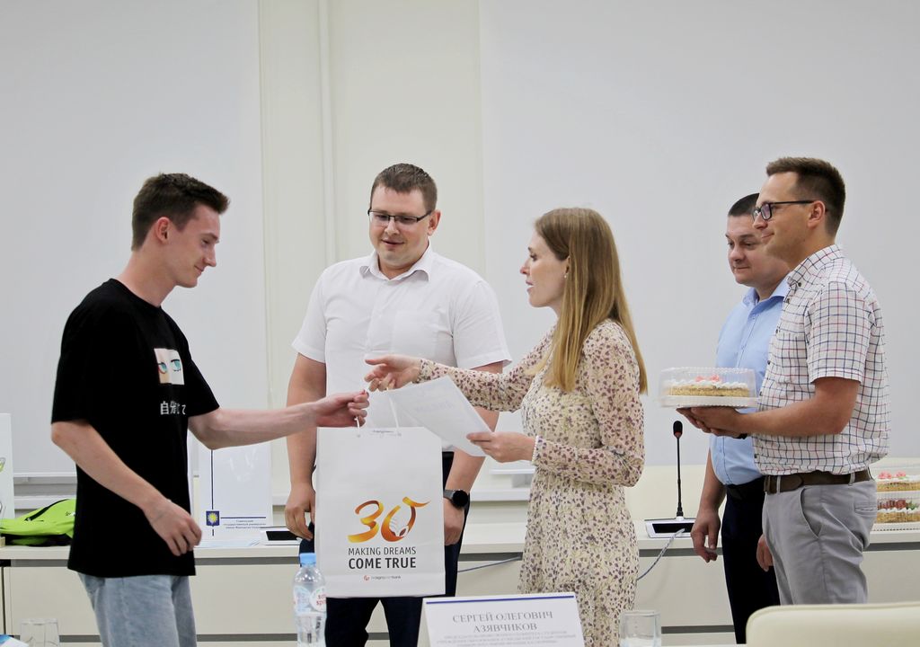 Участник команды факультета физики и информационных технологий «Онигири» Даниил Комяков (руководитель команды – Анна Николаевна Годлевская) презентовал проект «ГГУ имени Ф. Скорины: рекламная продукция предприятия общественного питания». Даниил обосновал возможность повышения привлекательности разных факультетов и специальностей нашего университета для абитуриентов с использованием инновационной рекламы в виде пищевой продукции с эмблемами университета и факультетов, а также использования данной продукции при награждении победителей спортивных и интеллектуальных соревнований, проводимых в университете. Даниил убедил членов жюри в том, что сладкое не только поднимает настроение, но и может быть эффективным инструментов рекламы и повышения лояльности студентов и абитуриентов к вузу.