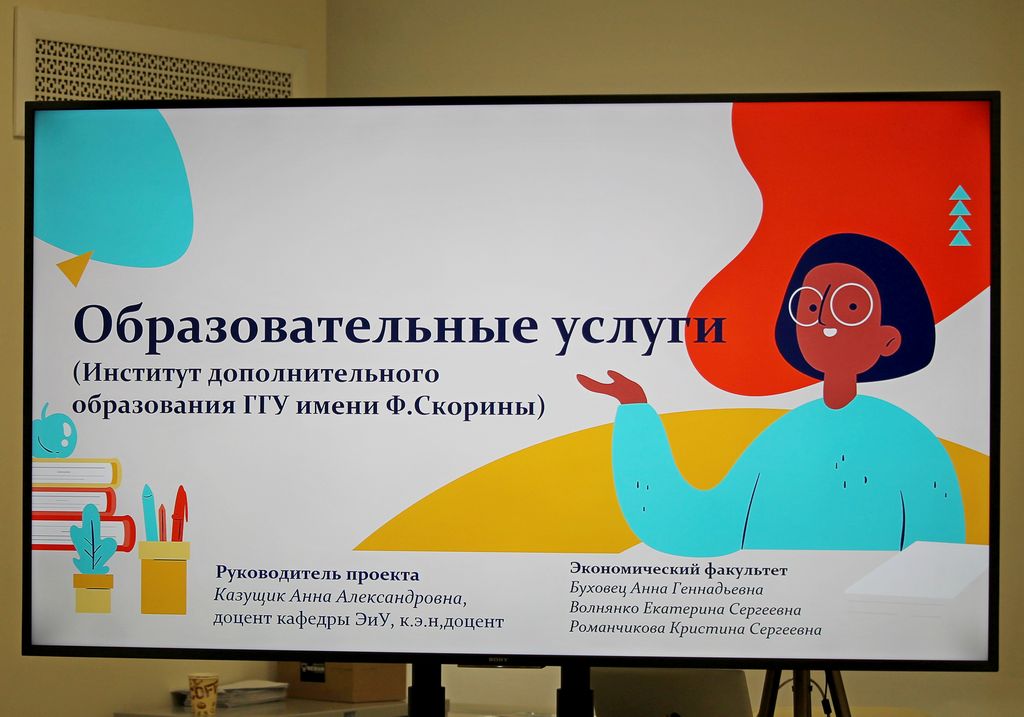 Команда экономического факультета «ИНСАЙТ», (Анна Буховец, Екатерина Волнянко, Кристина Романчикова, руководитель команды – Анна Александровна Казущик) выбрала кейс-задание в части расширения образовательных услуг Института дополнительного образования ГГУ имени Франциска Скорины. В своем кейс-решении авторы проекта представили подробный анализ уже существующих курсов и предпосылок предложения новых программ, которые могут быть востребованы среди широкого круга потенциальных слушателей из числа индивидуальных предпринимателей, представителей малого, среднего и крупного бизнеса, что позволит существенно повысить доход от оказания услуг по программам повышения квалификации руководящих работников и специалистов по направлениям. Разработчики убеждены, что программы «Малобюджетный маркетинг» и «Особенности ведения маркетинговой деятельности в странах Азии», учебно-тематические планы которых были представлены членам жюри, помогут сформировать у слушателей компетенции, необходимые сегодня бизнесу в построении правильного позиционирования своих товаров и услуг за рубежом, для более эффективного их продвижения в сети интернет и стимулирования продаж.