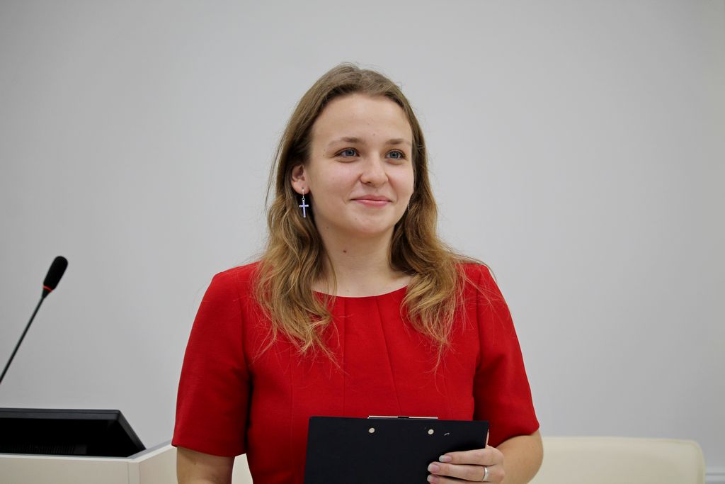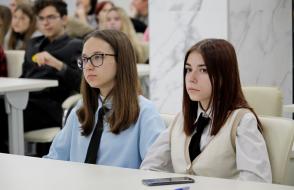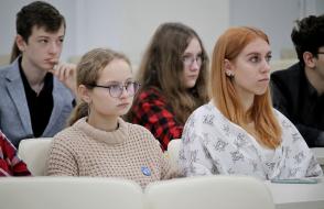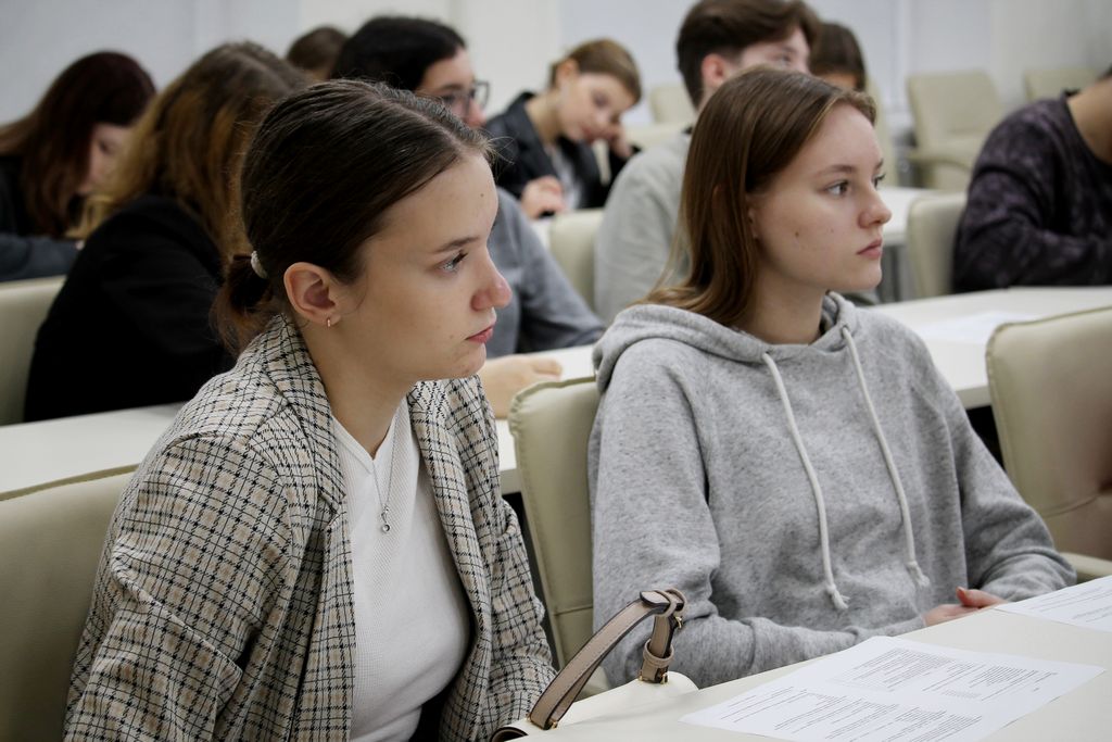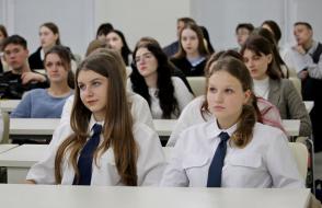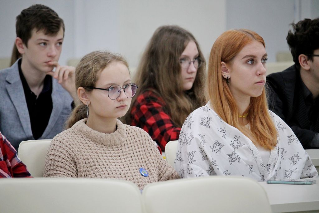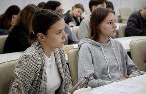 Заместитель председателя Студенческого совета, студентка филологического факультета ГГУ Нина Алдакушкина выступила с презентацией об университете, рассказав ребятам о том, как организован учебно-воспитательный процесс в вузе и какие возможности открываются перед студентами.