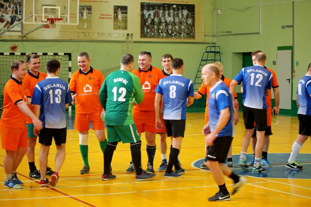 В преддверии Нового года в спортивном зале ГГУ имени Франциска Скорины состоялся товарищеский матч по мини-футболу среди представителей ректората и преподавателей университета. С приветственными словами и пожеланием спортивных побед к участникам соревнования обратился Михаил Селькин – почетный профессор ГГУ, более 40 лет являвшийся бессменным капитаном команды преподавателей университета.