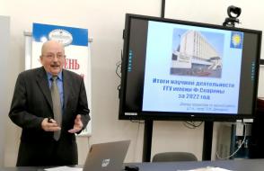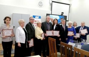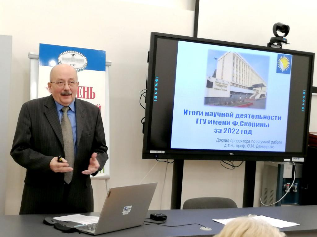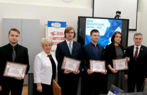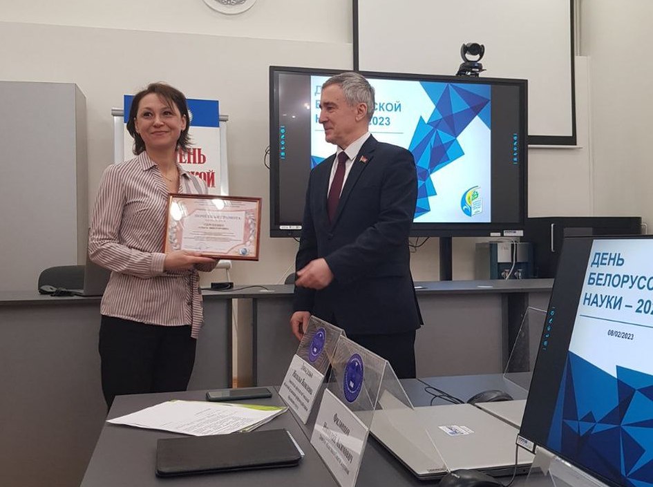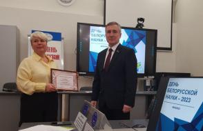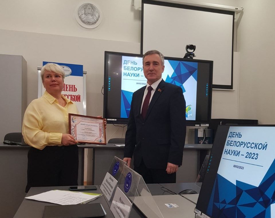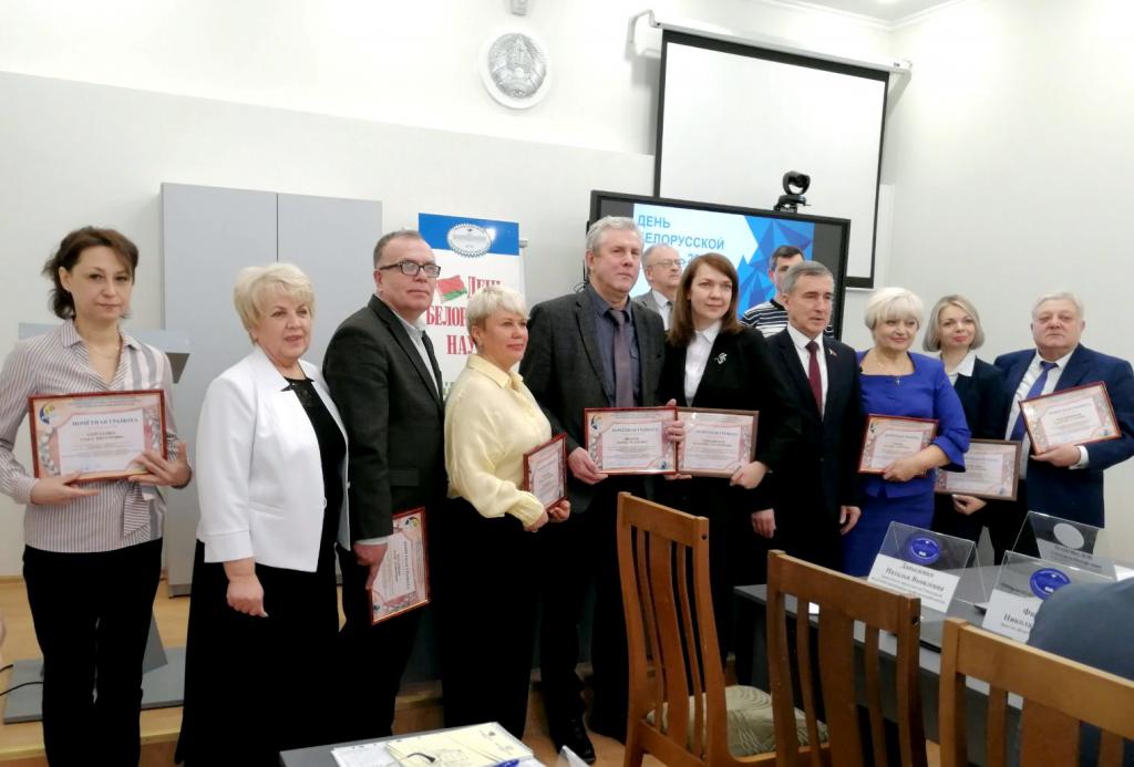 С информацией об итогах научной работы за прошедший год от нашего университета выступил проректор по научной работе, доктор технических наук, профессор Олег Михайлович Демиденко, который в своем докладе отметил существенный вклад кафедр факультетов в научные успехи вуза. Премией Гомельской областной организации Белорусского профсоюза работников образования и науки для молодых ученых был отмечен ассистент кафедры философии и специальных исторических дисциплин нашего университета Николай Александрович Артюшко. Также почетных грамот областной организации были награждены доцент кафедры радиофизики, кандидат физико-математических наук, доцент Алина Валентиновна Семченко и ведущий экономист научно-исследовательского сектора Ольга Викторовна Сергеенко.