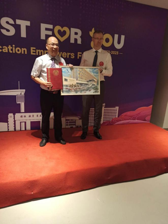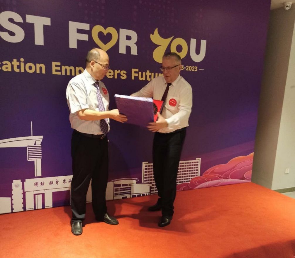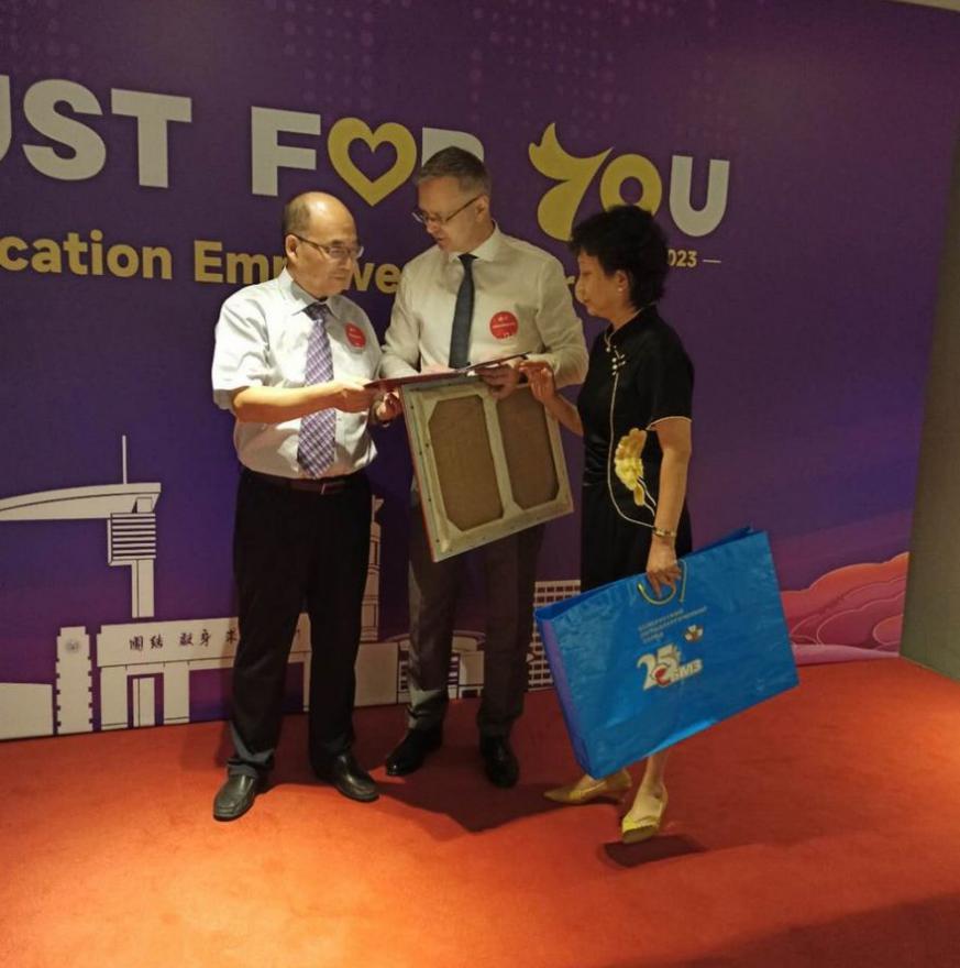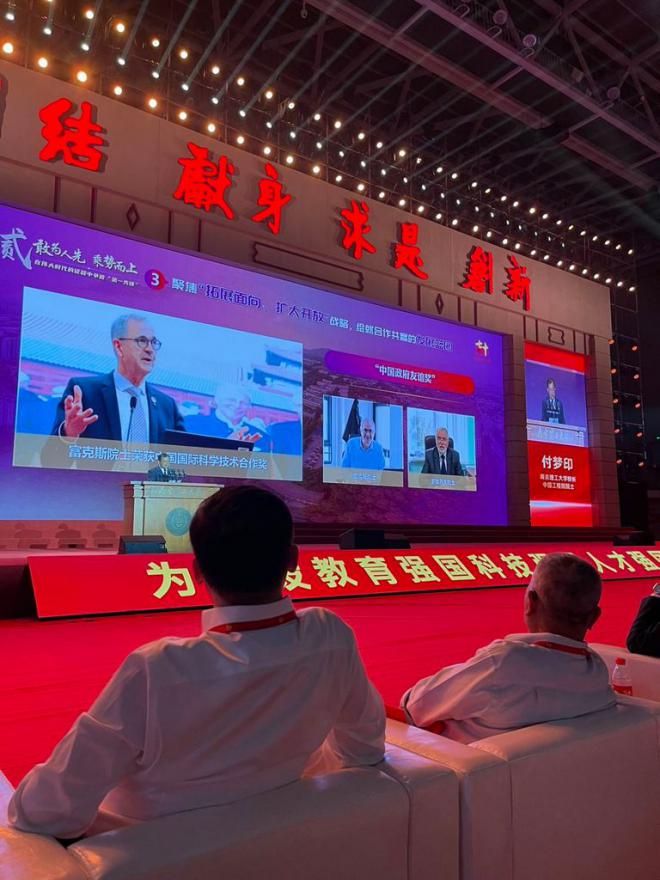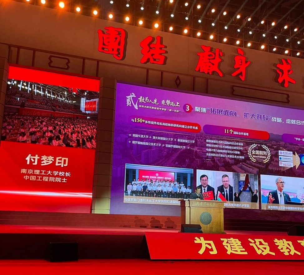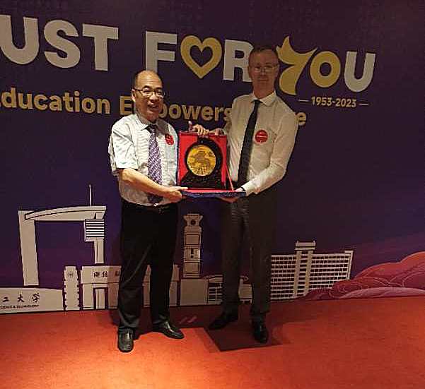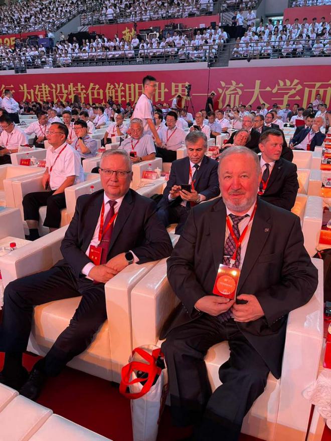 На торжественной церемонии в честь 70-летнего юбилея Нанкинского университета науки и технологий Сергей Хахомов вручил руководству китайского вуза-партнера поздравительный адрес и памятные подарки.
