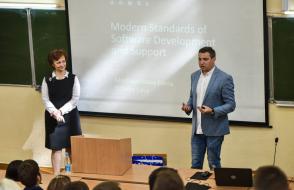 С началом учебного года возобновил свою работу филиал кафедры математических проблем управления и информатики, который работает на базе IT-компании «ИВА-Гомель-Парк». В рамках его работы состоялся семинар на английском языке о современных методах разработки программного обеспечения, который провели ведущие специалисты компании Елена Межейникова и Лави Ицхаки.
