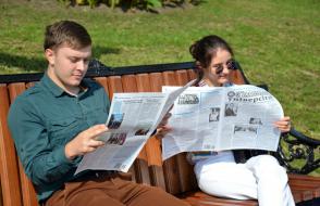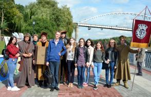 Наш университет тоже внес свою лепту в украшение города – на набережной возле Памятника первопоселенцу-охотнику развернулась пятнадцатиметровая тематическая площадка под названием «Скорина и наше время».