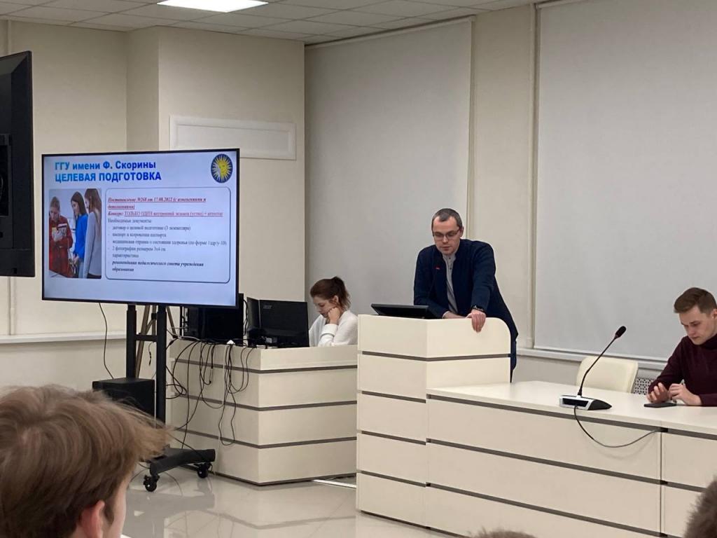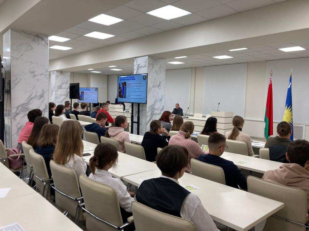 Продолжаются встречи администрации университета с обучающимися из числа профильных инженерных и педагогических классов учреждений образования Гомельской области: Светлогорска, Брагина, Жлобина, Калинковичей, Чечерска и др. По традиции с приветственным словом перед школьниками выступил проректор по учебной работе Юрий Никитюк. Об обучении, студенческих праздниках и буднях гостям рассказал студент факультета физики и ИТ Сергей Саковский. Подробно остановился на правилах приема, льготах и преимуществах при поступлении, а также ответил на вопросы потенциальных абитуриентов и сопровождающих их педагогов Александр Руденков – ответственный секретарь приемной комиссии. После официальной части обучающиеся продолжили знакомство с университетом в ходе экскурсий по факультетам.