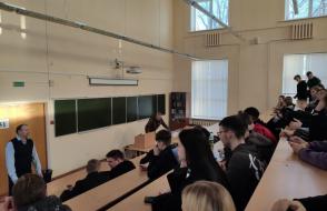 На факультете математики и технологий программирования была организована встреча студентов 1-го курса с инженером по пожарной безопасности Евгением Анашкиным. Тема беседы – правила поведения в чрезвычайных ситуациях.