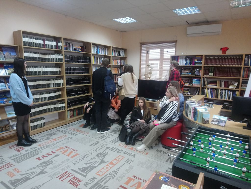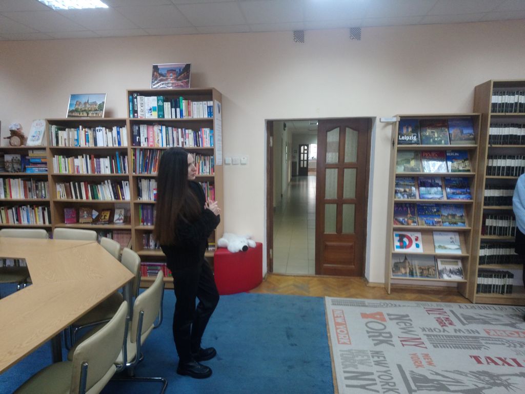 У сувязі з такой інтрыгуючай імпрэзай студэнты 1-га курса факультэта замежных моў з цікавасцю наведалі 10 лістапада бібліятэку, дзе перад пачаткам прадстаўлення Юлія Сяргееўна Абрамовіч, загадчыца аддзела літаратуры на замежных мовах, правяла маладых людзей у названы аддзел, дзе пазнаёміла іх з багацейшай скарбніцай арыгінальнай літаратуры амаль на ўсіх заходнееўрапейскіх мовах. Навучэнцаў прыемна ўразіла ўтульная атмасфера аддзела, прастора залы і яе незвычайнае абсталяванне, бо ў яе інтэр’ер арганічна ўпісваўся, акрамя ўсяго, і рабочы 3D-прынтар…