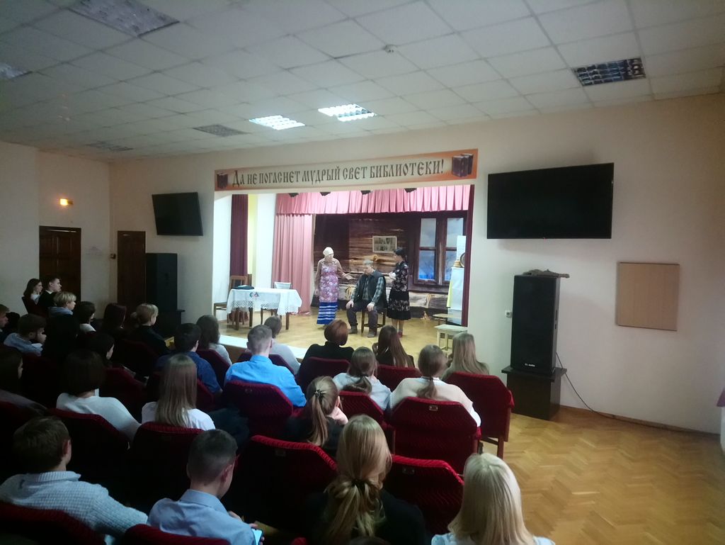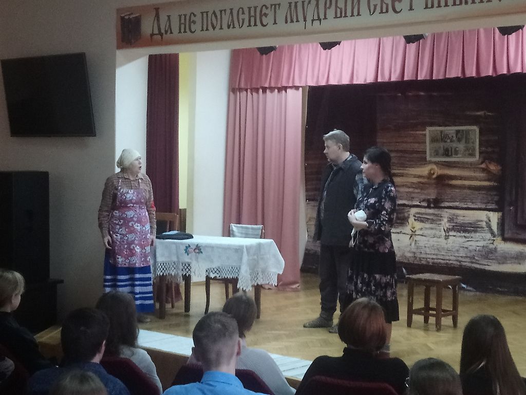 Сам спектакль, на які, акрамя нашых студэнтаў, завіталі школьнікі і навучэнцы каледжаў, спадабаўся, бадай, усім: са сцэны гучала сакавітая, макаёнкаўская яшчэ, тая самая (!) беларуская мова, занатаваная назаўжды нашым славутым пісьменікам-земляком для нашчадкаў… У зале прысутнічаў і сам рэжысёр, відаць, крытычна ў каторы ўжо раз ацэньваючы высокамастацкую і вывераную ігру акцёраў. Пад вялікім уражаннем засталіся нашы дзяўчаты і хлопцы, якія прыйшлі на спектакль: па іх словах, яны проста не чакалі такой па-сапраўднаму прафесійнай ігры акцёраў, у якіх на гадзіну пераўтварыліся працаўнікі бібліятэкі: Н. Цясёлкіна, Ю. Рачынскі, І. Студнева, П. Еўтухоў, П. Барысаў, А.Радчанка, І. Рыдкіна, В. Крачкова.