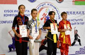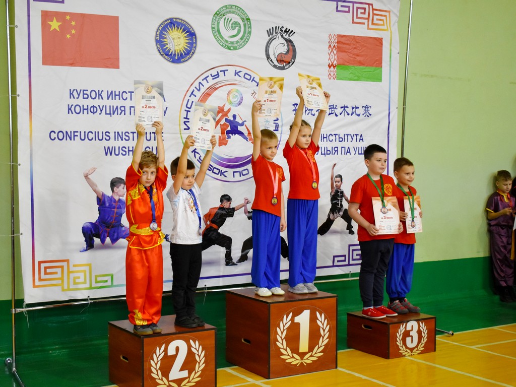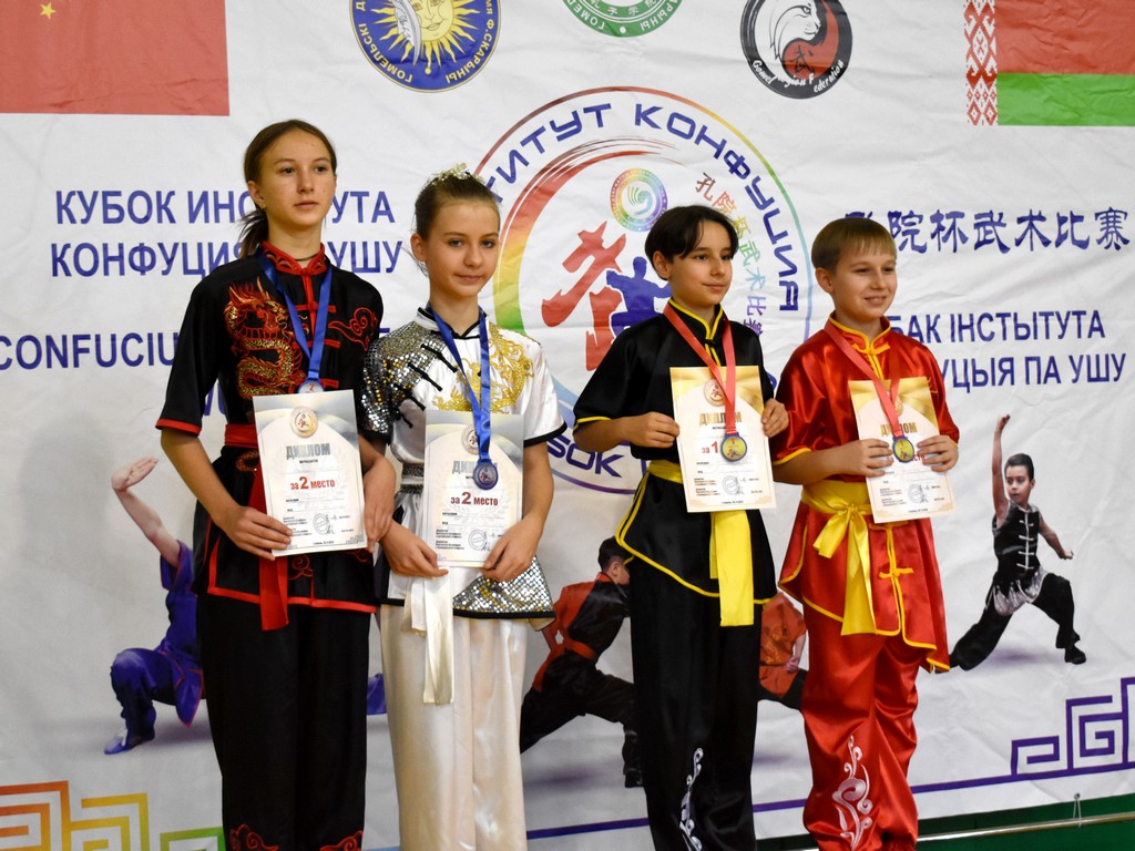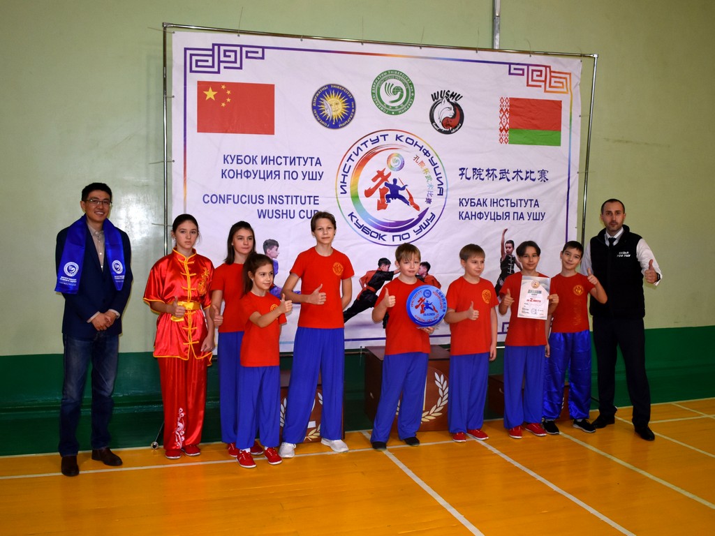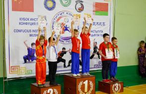 В соревнованиях команд с небольшим отрывом от хозяев турнира победила команда юных любителей ушу «Золотой дракон» из Бреста, получившая кубок Института Конфуция.