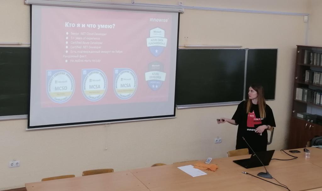 Анна Голосова в понятной и доступной форме рассказала студентам о разработке программного обеспечения на платформе .Net, разработке кроссплатформенных приложений на Xamarin, необходимом стеке технологий для успешной работы в качестве .Net разработчика и др.