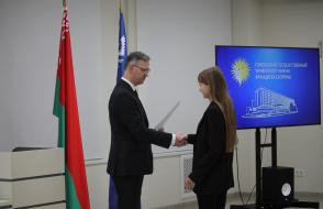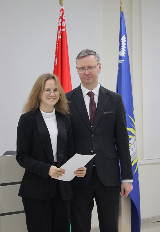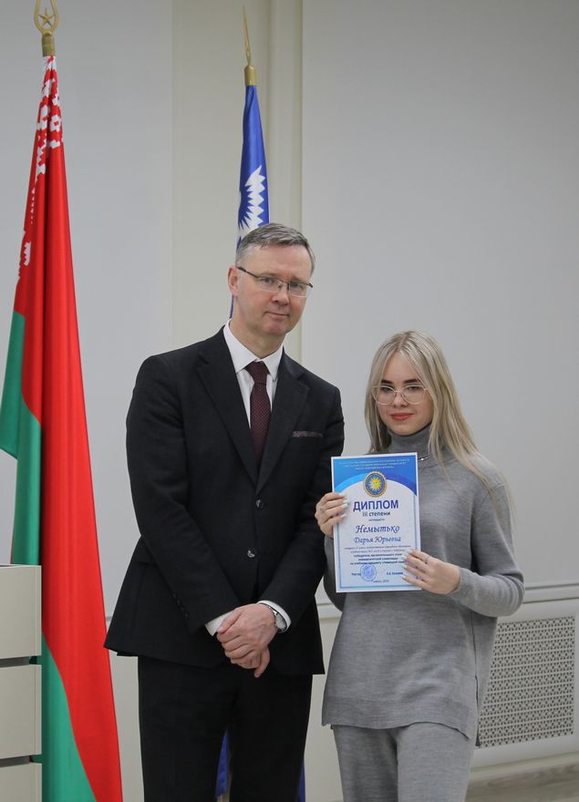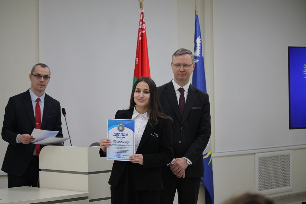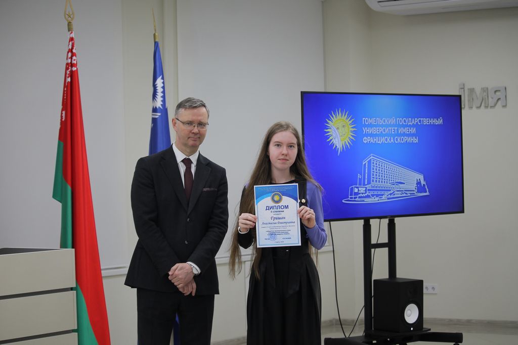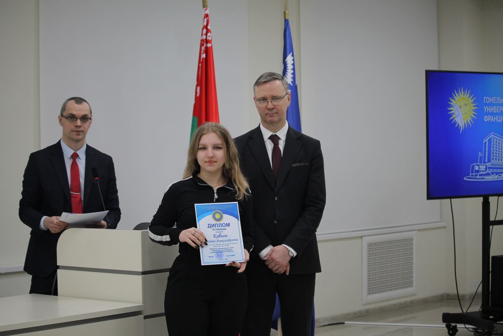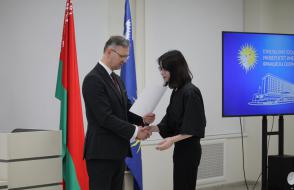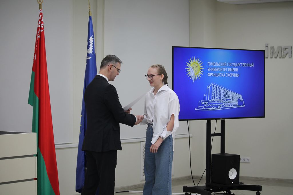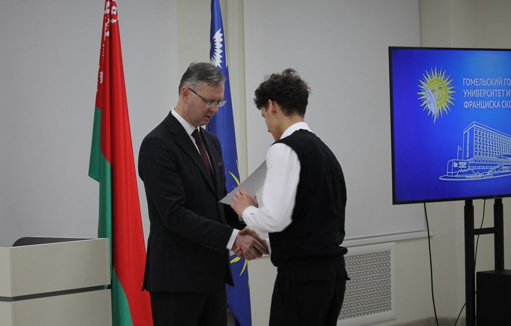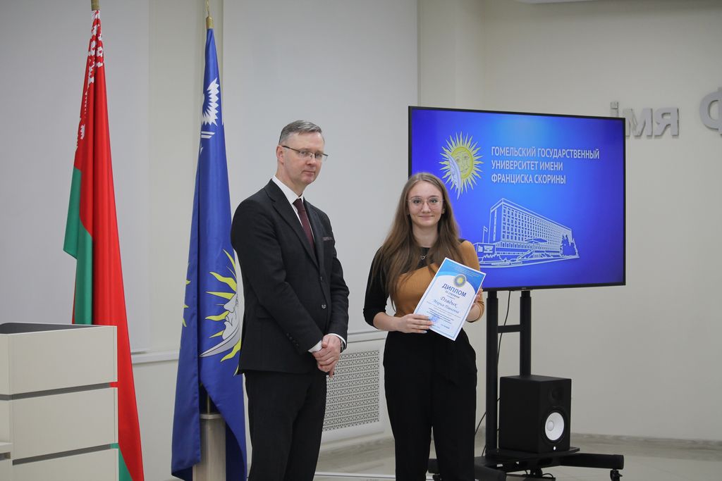 В Гомельском государственном университете имени Франциска Скорины состоялось торжественное награждение победителей университетских олимпиад по различным предметам. Ректор университета Сергей Хахомов вручил дипломы учащимся 11 классов, которые показали выдающиеся знания и умения в таких областях, как математика, биология, иностранные языки и другие. Победителями заключительного этапа университетской олимпиады стали 84 учащихся. Данная категория абитуриентов будет зачислена без экзаменов в рамках квоты, утверждённой Министерством образования Республики Беларусь. Также представители университета встретились с учащимися 11 классов учреждений общего среднего образования, претендующих на получение аттестатов особого образца с награждением золотой или серебряной медали. Согласно Указа Президента Республики Беларусь №416 от 29 декабря 2023 года данная категория абитуриентов может быть зачислена в наш университет без экзаменов на все специальности, за исключением специальностей: "Правоведение", "Экономическое право", "Журналистика" и "Тренерская деятельность", в рамках 80 процентов от контрольных цифр приема на бюджет.