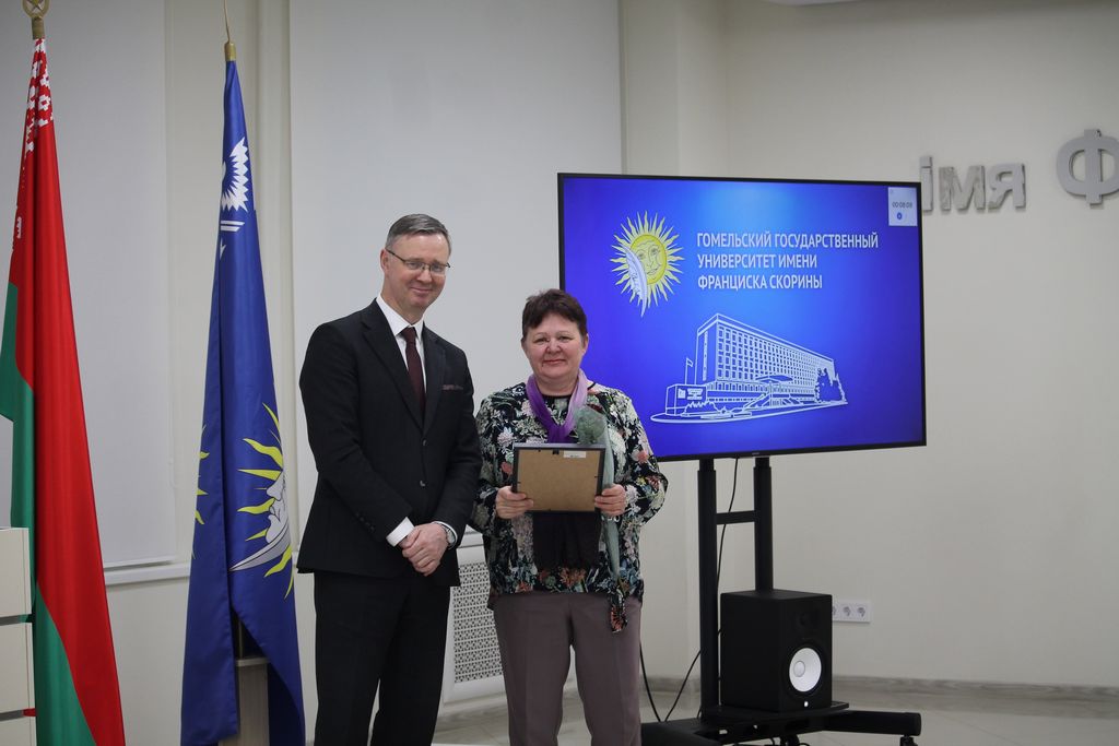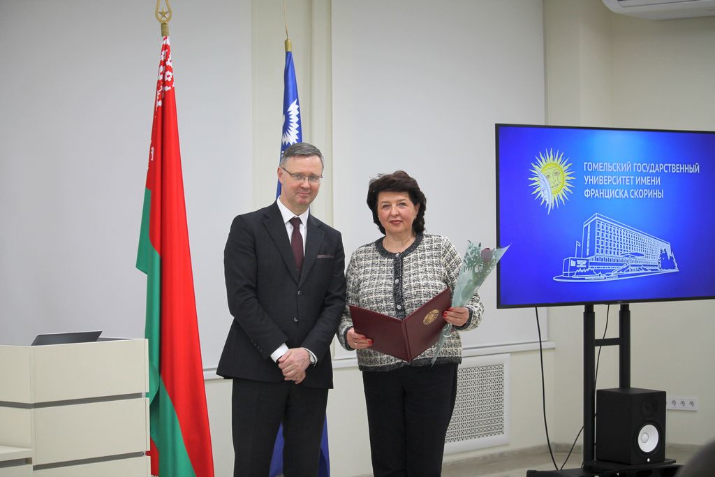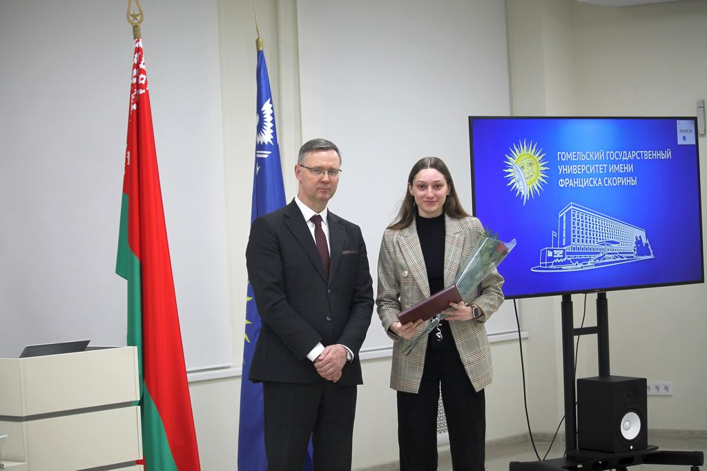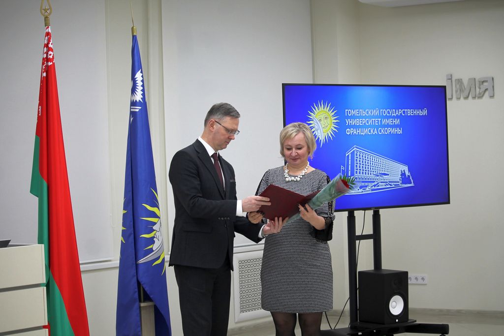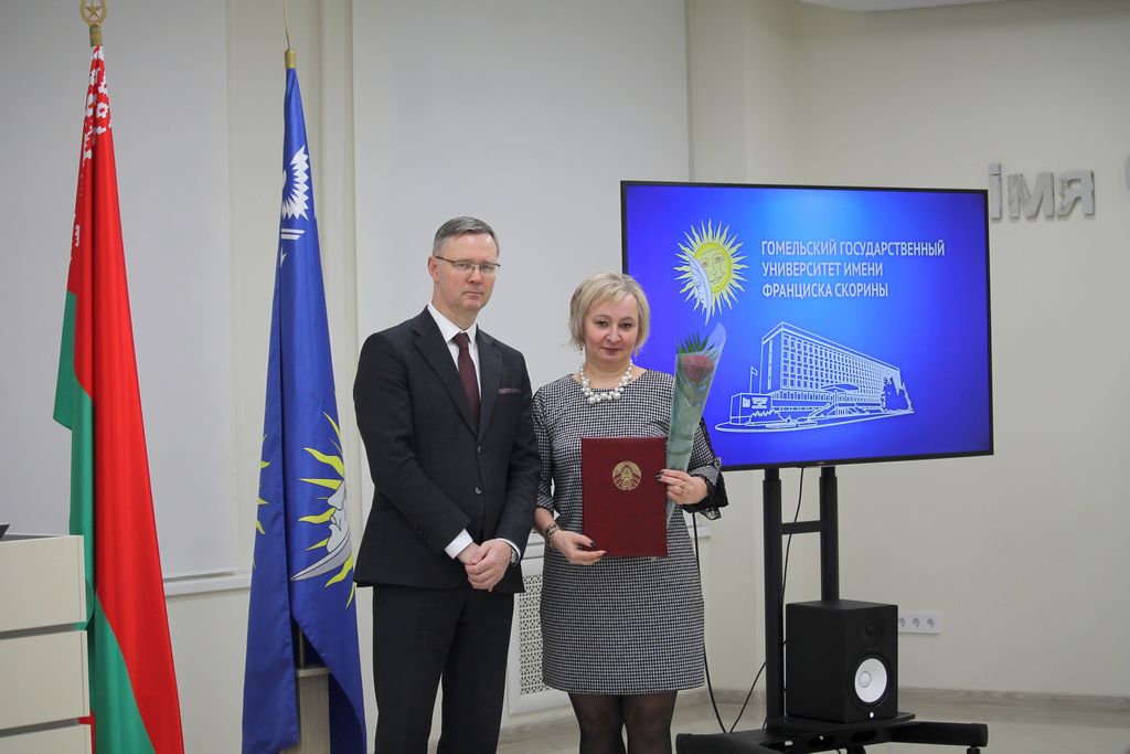 Заседание совета университета открылось торжественной церемонией вручения Свидетельств специального фонда Президента Республики Беларусь по социальной поддержке одаренных учащихся и студентов. Почетной грамотой университета за многолетнюю плодотворную учебную и воспитательную работу по подготовке квалифицированных специалистов награждены старший преподаватель кафедры автоматизированных систем обработки информации Владимир Кулинченко, старший преподаватель кафедры экология Галина Осипенко, специалист редакционно-издательского отдела Валентина Калугина.  За добросовестную и плодотворную работу в системе образования, творческую инициативу, высокие достижения в профессиональной деятельности Грамотой Министерства образования Республики Беларусь награждена заведующий общежитием №1 Елена Шенец. На заседании Совета университета был рассмотрен ряд  актуальных вопросов, касающихся основных направлений деятельности университета. О взаимодействии университета с организациями-заказчиками кадров проинформировал первый проректор университета Андрей Крук. Информацию о выполнении университетом прогнозного показателя и программы по энергосбережению за 2023 год озвучил проректор Александр Васильева. С презентацией о реализации университетом международных проектов выступил начальник отдела международных связей Александр Грахоцкий. Проректор по воспитательной работе Дмитрий Ходанович проинформировал членов совета о сотрудничестве ГГУ имени Ф.Скорины с Гомельской епархией.