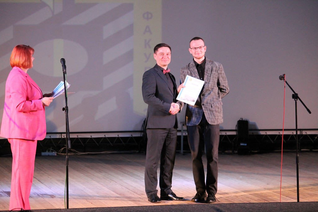 11 апреля филологический факультет пригласил зрителей на прекрасное мероприятие - концерт-спектакль по мотивам известнейшего романа Михаила Афанасьевича Булгакова! Зрители в полной мере оценили искрометные шутки о студенческой жизни, сессии, распределении. А ещё - прекрасный вокал, зажигательные танцы в исполнении белорусских и туркменских студентов! Почётным гостем концерта стал проректор по воспитательной работе Дмитрий Ходанович, который вручил грамоты студентам, отличившимся в общественной и культурной работе. Заслуженные награды также получили победители олимпиад и научных конкурсов! Благодарим студентов филфака за прекрасный вечер и ждём следующих встреч! Через год факультет отпразднует свое 90-летие!