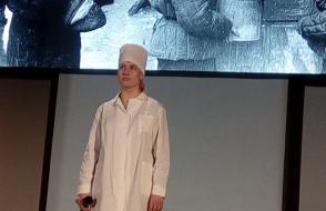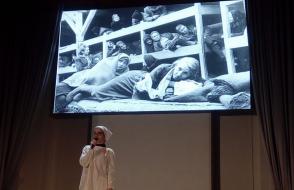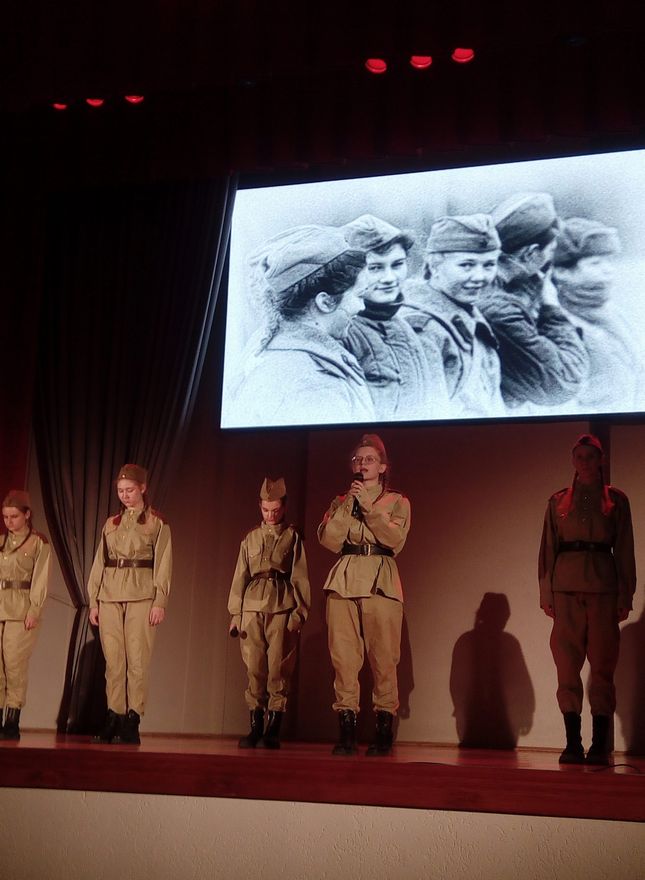 Тематические видео, фотографии, биографические факты и кадры военной хроники – в каждом фрагменте спектакля нам убедительно рассказали о материнской боли и детских страданиях, разносторонне продемонстрировали трагичность женских судеб и героизм, проявленный девушками и женщинами в концлагерях, блокадном Ленинграде и на оккупированной территории Беларуси.