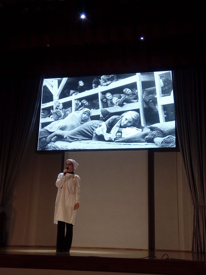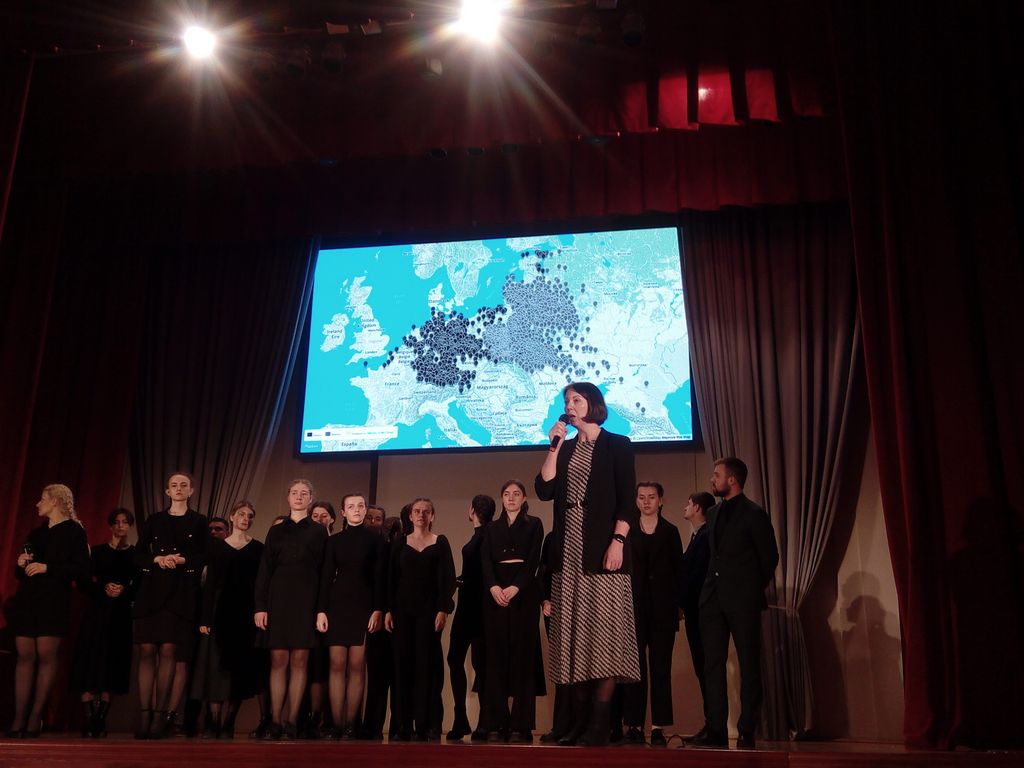 Ева Ободинская: «Сегодня наш маленький коллектив посетил мероприятие – интересное и трогательное, в некоторых моментах – жуткое, когда перед нами оживали ужасные события, происшедшие в годы фашистской оккупации, и от услышанного и увиденного стыла кровь. Мы благодарим ГомГМУ за предоставленную будущими медработниками возможность более глубоко понять и ощутить, что такое война, фашизм и геноцид. Благодаря совместно испытанным эмоциям и переживаниям наши университеты стали еще ближе».