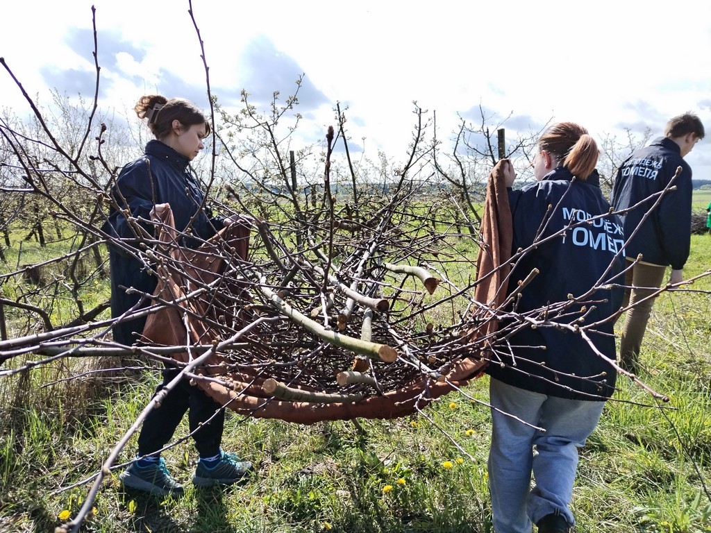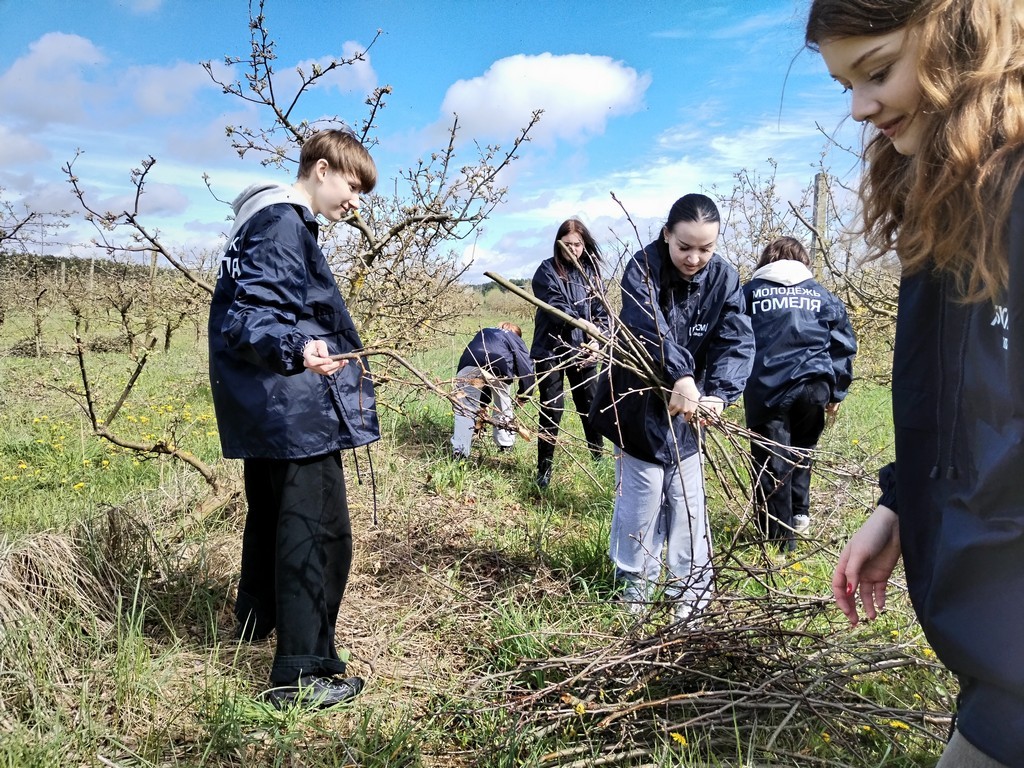 В рамках республиканской акции «Сад надежды» волонтёры ГГУ имени Франциска Скорины помогли с уборкой веток в яблоневом саду ОАО «Комбинат «Восток».