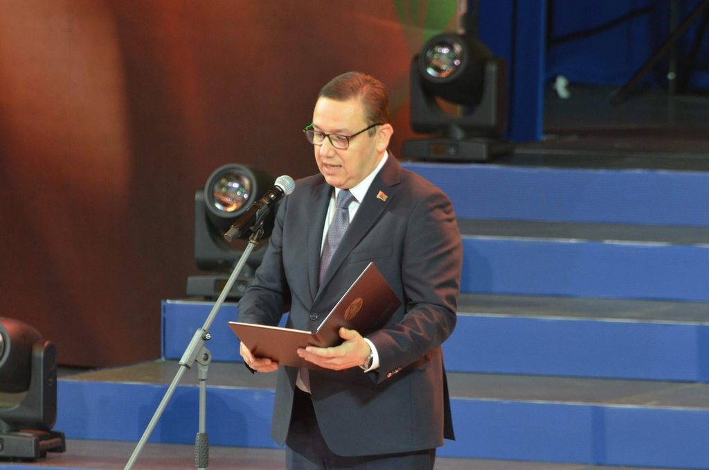 Делегация Гомельского государственного университета имени Франциска Скорины во главе с ректором Сергеем Хахомовым приняла участие в торжественном мероприятии, посвященном Дню учителя.