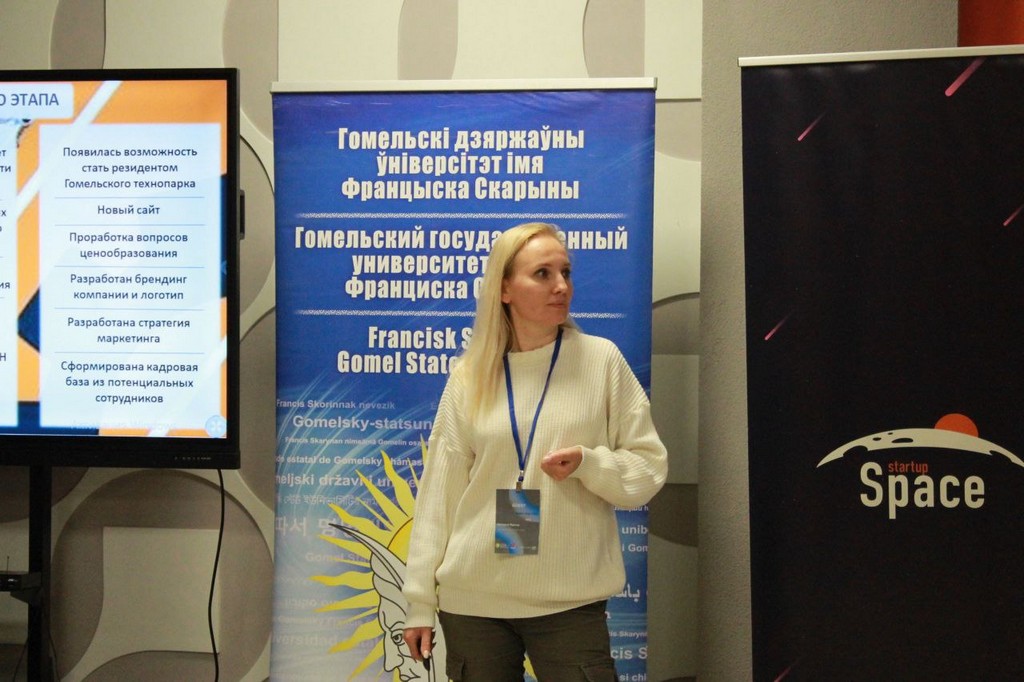Руководитель молодежного предпринимательского сообщества «StartUp Space GSU» Александрова Ольга, студентка экономического факультета Гомельского государственного университете познакомила участников форума с  сообществом и отметила, что членство студентов в «StartUp Space GSU» открывает перед ребятами новые возможности в части личностного роста и развития, реализации  смелых  идей и интересного общения: ««StartUp Space» - движущая сила развития стартап-культуры среди студентов!  «StartUp Space GSU» создан по инициативе Стартап-центра нашего университета при поддержке «StartUp Space BSU», где и зародилось это движение.»