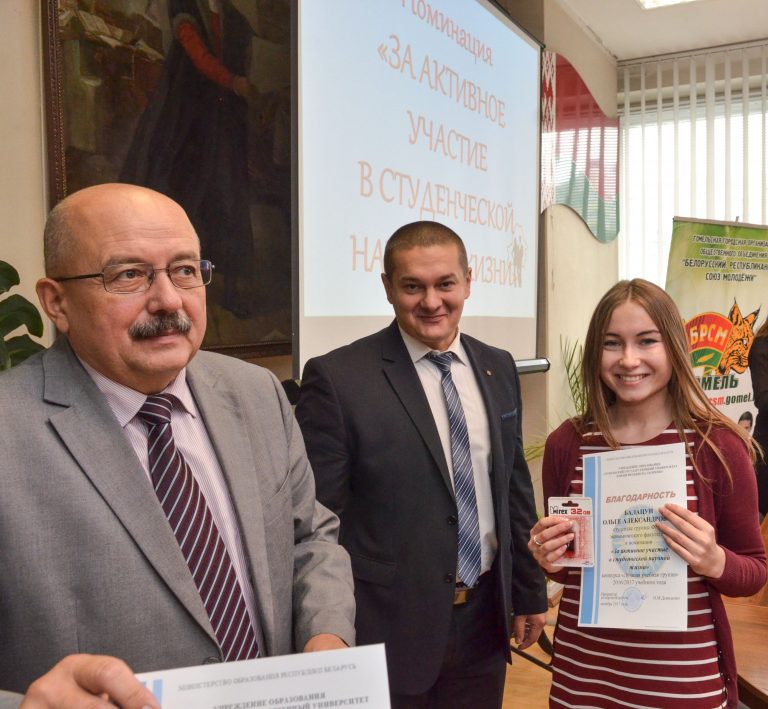 На торжественной церемонии присутствовали проректор по научной работе Олег Михайлович Демиденко, проректор по воспитательной работе Юрий Валерьевич Никитюк, начальник научно-исследовательского сектора Руслан Викторович Бородич, начальник учебно-методического отдела Елена Ивановна Воробьева, председатель профсоюзного комитета студентов Сергей Олегович Азявчиков и секретарь ПО ОО «БРСМ» Екатерина Николаевна Федоренко.