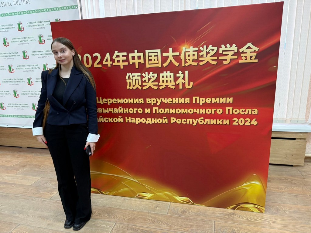 12 ноября 2024 года в стенах Белорусского государственного университета физической культуры (г. Минск) прошла торжественная церемония вручения премии Посла Китайской Народной Республики. С приветственными словами к присутствующим обратились Чжан Вэньчуань, Чрезвычайный и Полномочный Посол Китайской Народной Республики в Республике Беларусь, и Александр Владимирович Кадлубай, заместитель министра образования Республики Беларусь. На церемонии присутствовал проректор по научной работе ГГУ имени Ф. Скорины Дмитрий Леонидович Коваленко.