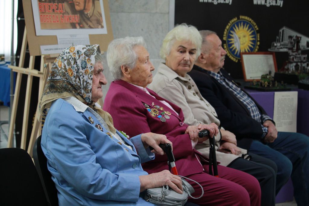 Приближается знаменательная дата для всех гомельчан – 81 годовщина освобождения г. Гомеля от немецко-фашистских захватчиков. В преддверии славной даты в выставочном зале университета прошла диалоговая площадка с участием студентов биологического факультета и почетных гомельчан города, участвовавших в освобождении Гомеля в период Великой отечественной войны. С приветственным словом к присутствующим обратился проректор по идеологической и воспитательной работе Дмитрий Ходанович. Он отметил значимость таких мероприятий, которые проводятся по инициативе биологического факультета уже не первый год. Председатель совета ветеранов Центрального района г. Гомеля Юрий Шевчук зачитал обращение к потомкам Гомельского городского совета ветеранов. Историей своего  боевого пути поделилась со студентами ветеран Великой Отечественной войны Аэлита Самсонова. О жизни в оккупированном городе со слезами на глазах вспоминала Надежда Шубина. Никого из присутствующих рассказы героев той  войны не оставили равнодушными. По лицам студентов было видно, что они переживают те страшные  дни вместе с их непосредственными участниками. После окончания работы диалоговой площадки студенты еще долго не отпускали ветеранов, каждый хотел сфотографироваться с ними, и прикоснуться к той победе, которую ковали приглашенные на мероприятие участники боевых действий. Руководитель волонтерского отряда «Ветеран» Татьяна Макаренко, бывший председатель отряда Максим Минин и заместитель декана по идеологической и воспитательной работе биологического факультета Светлана Пантелеева обратились к первокурсникам с призывом беречь родину и активнее участвовать в жизни общества.