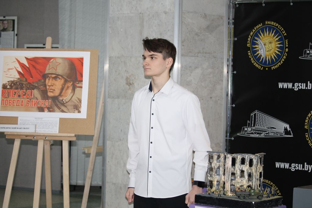 Выставочный проект "Память народа в надежных руках молодых", приуроченный к 81-ой годовщине освобождения Гомеля от немецко-фашистских захватчиков открыт в выставочном зале Гомельского государственного университета имени Франциска Скорины. Историческая память является основой национального самосознания, которое имеет важное значение для развития и жизнеспособности общества и государства. Тема выставки: «ВЕЛИКАЯ ОТЕЧЕСТВЕННАЯ ВОЙНА В ТВОРЧЕСТВЕ ЛИТЕРАТОРОВ И ХУДОЖНИКОВ-ПЛАКАТИСТОВ». В рамках работы выставочного проекта будут организованы: встречи с детьми войны, просмотр документальных и художественных фильмов о событиях военных лет, музыкально-литературные композиции и т.д.