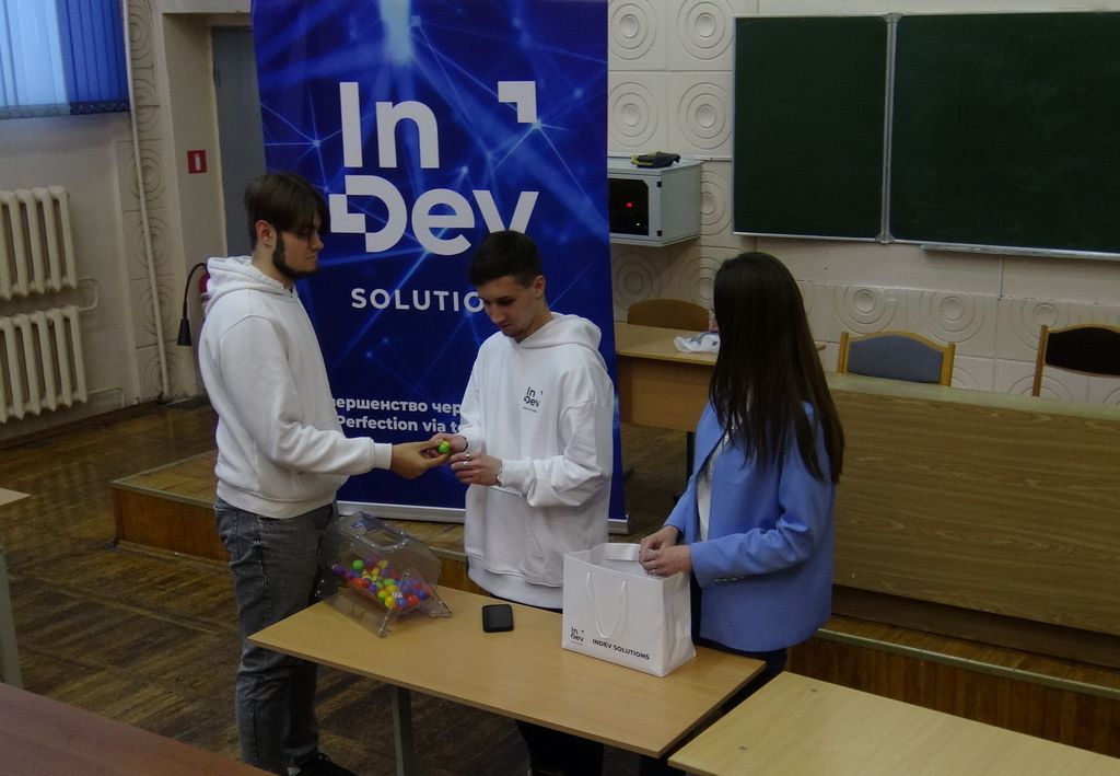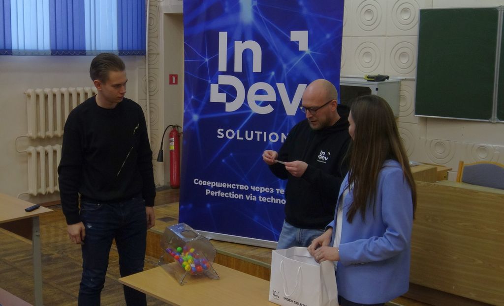 InDev Solutions - компания-разработчик программных продуктов для органов государственной власти и управления, а также предприятий и учреждений всех форм собственности. Компания специализируется на цифровизации различных секторов экономики и сфер жизнедеятельности: образование, здравоохранение, банковский и финансовый сектор, промышленность, общественная безопасность и других направлениях. На встрече были обсуждены вопросы сотрудничества между организациями. Помощник руководителя InDev Solutions Юлия Капитан и начальник отдела тестирования Андрей Воробьёв провели встречу со студентами факультета физики и ИТ, на которой рассказали о направлениях работы компании.