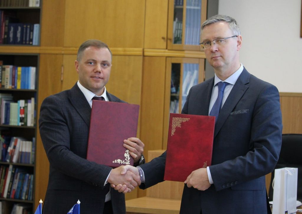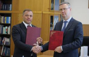 Ректор ГГУ имени Ф.Скорины Сергей Хахомов и генеральный директор компании  InDev Solutions Олег Беляков подписали соглашение о научно-техническом и образовательном сотрудничестве