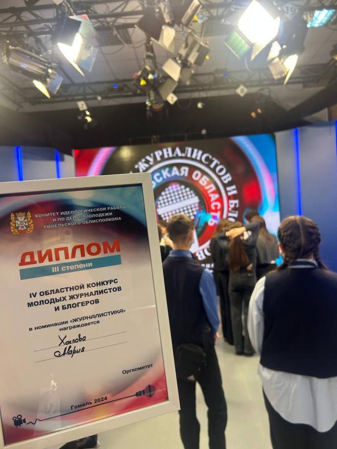 В Гомеле прошёл IV Областной конкурс молодых журналистов и блогеров. Среди победителей - студентка 1 курса филологического факультета ГГУ имени Франциска Скорины Мария Хохлова. Маша учится на специальности "Журналистика", пишет интересные тексты, снимает видеоролики. Поздравляем Машу Хохлову и желаем ей новых побед!