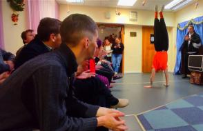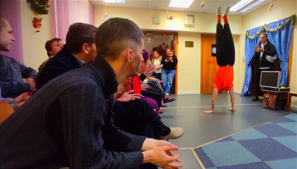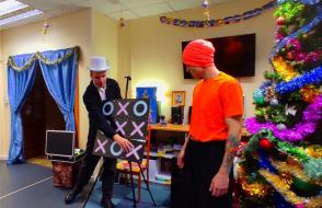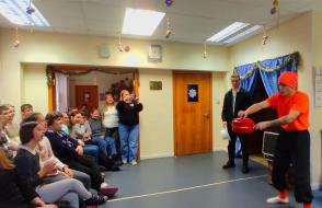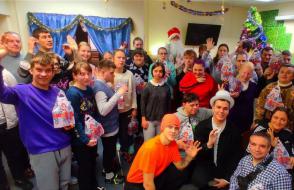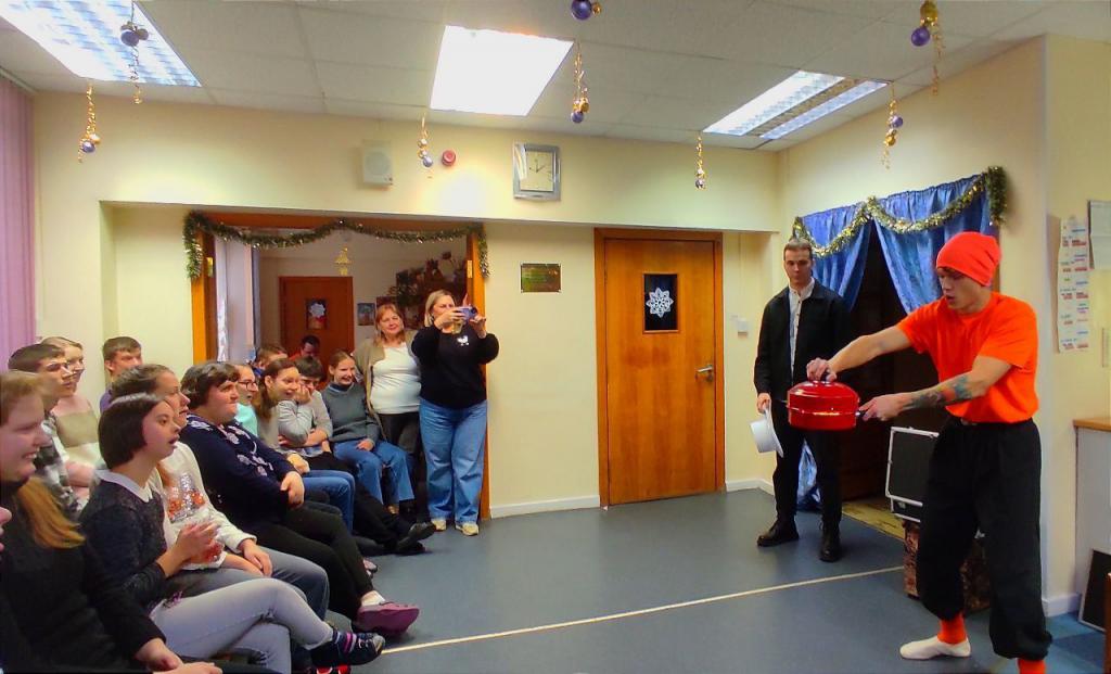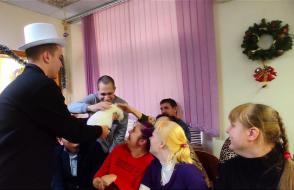 25 декабря подготовив анимационное шоу-представление с участием фокусника, клоуна, Снегурочки и Деда Мороза студенты факультета физической культуры ГГУ имени Ф.Скорины посетили отделение социальной реабилитации, абилитации инвалидов учреждения "Территориальный центр социального обслуживания населения Железнодорожного района г. Гомеля". Кроме волшебства и сказочных превращений они подарили воспитанникам сладкие подарки и новогодние сувениры.